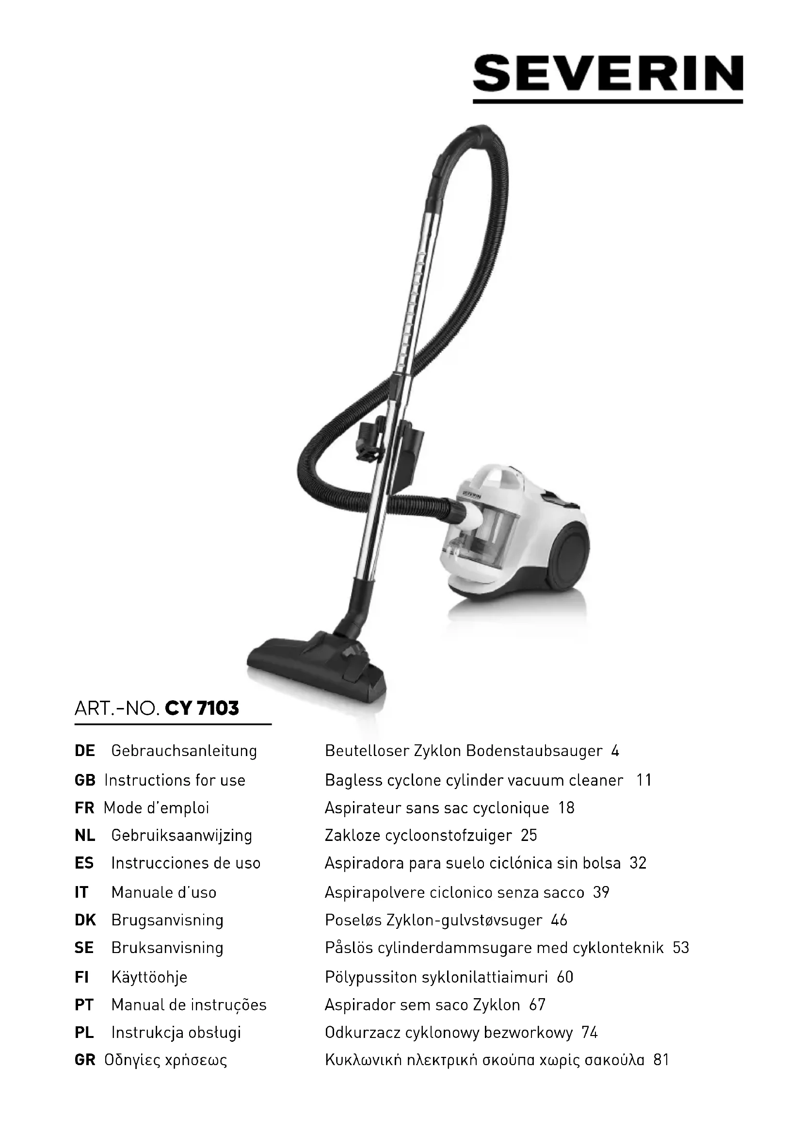 BC 7103 - Aspirateur SEVERIN - Notice d'utilisation et mode d'emploi gratuit