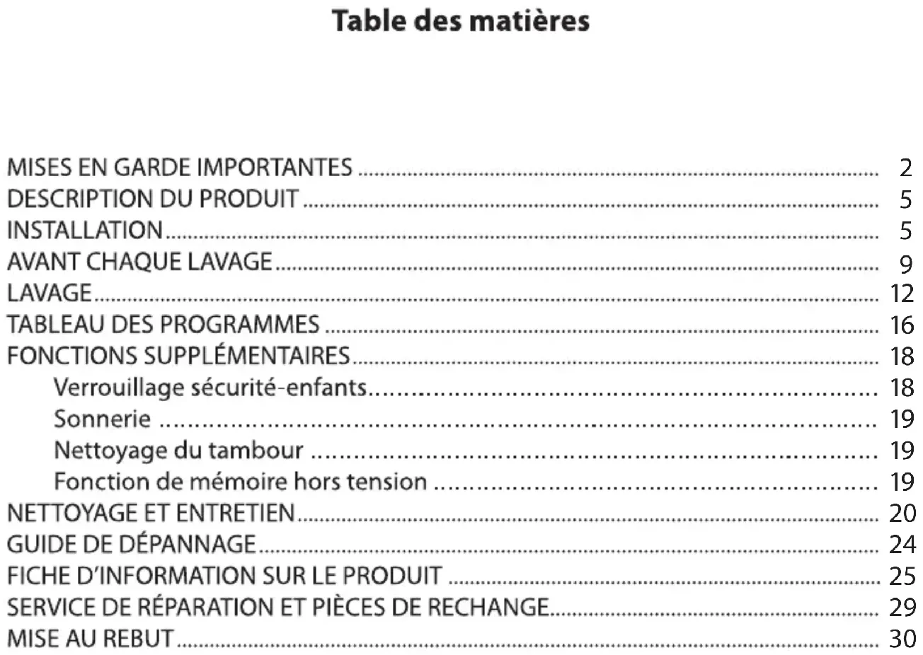 REMARQUE : Avant le lavage, veuillez vous assurer que l’installation est effectuée correctement.