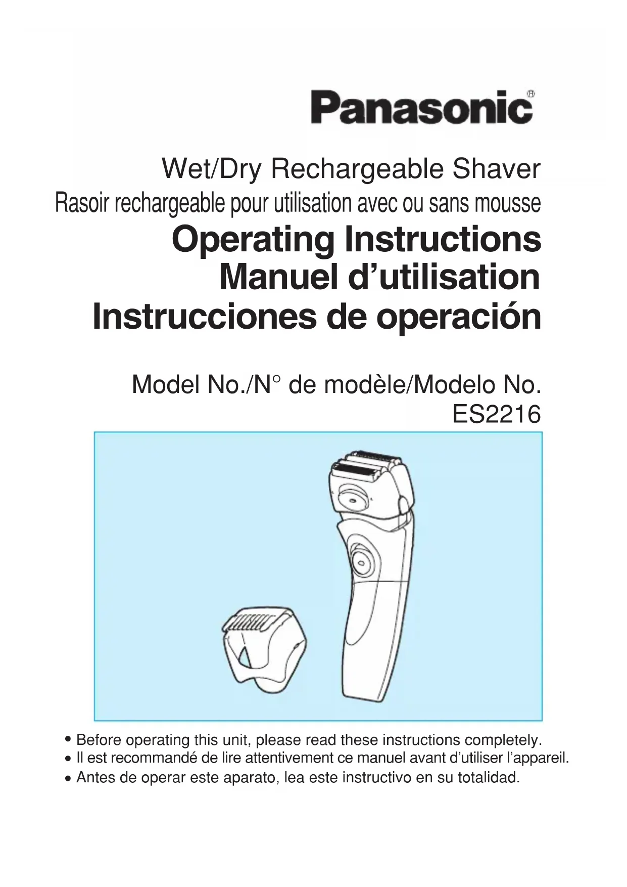ES2216 - Rasoir PANASONIC - Notice d'utilisation et mode d'emploi gratuit
