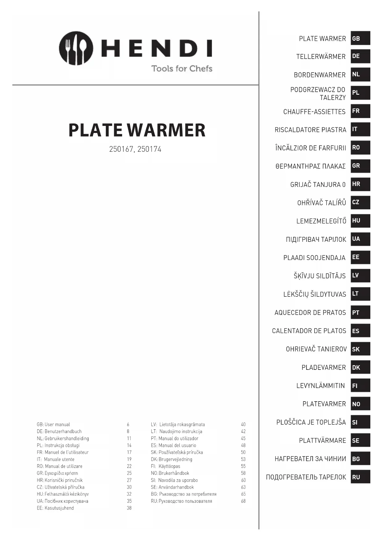 250174 - Chauffe-Plats Hendi - Notice d'utilisation et mode d'emploi gratuit