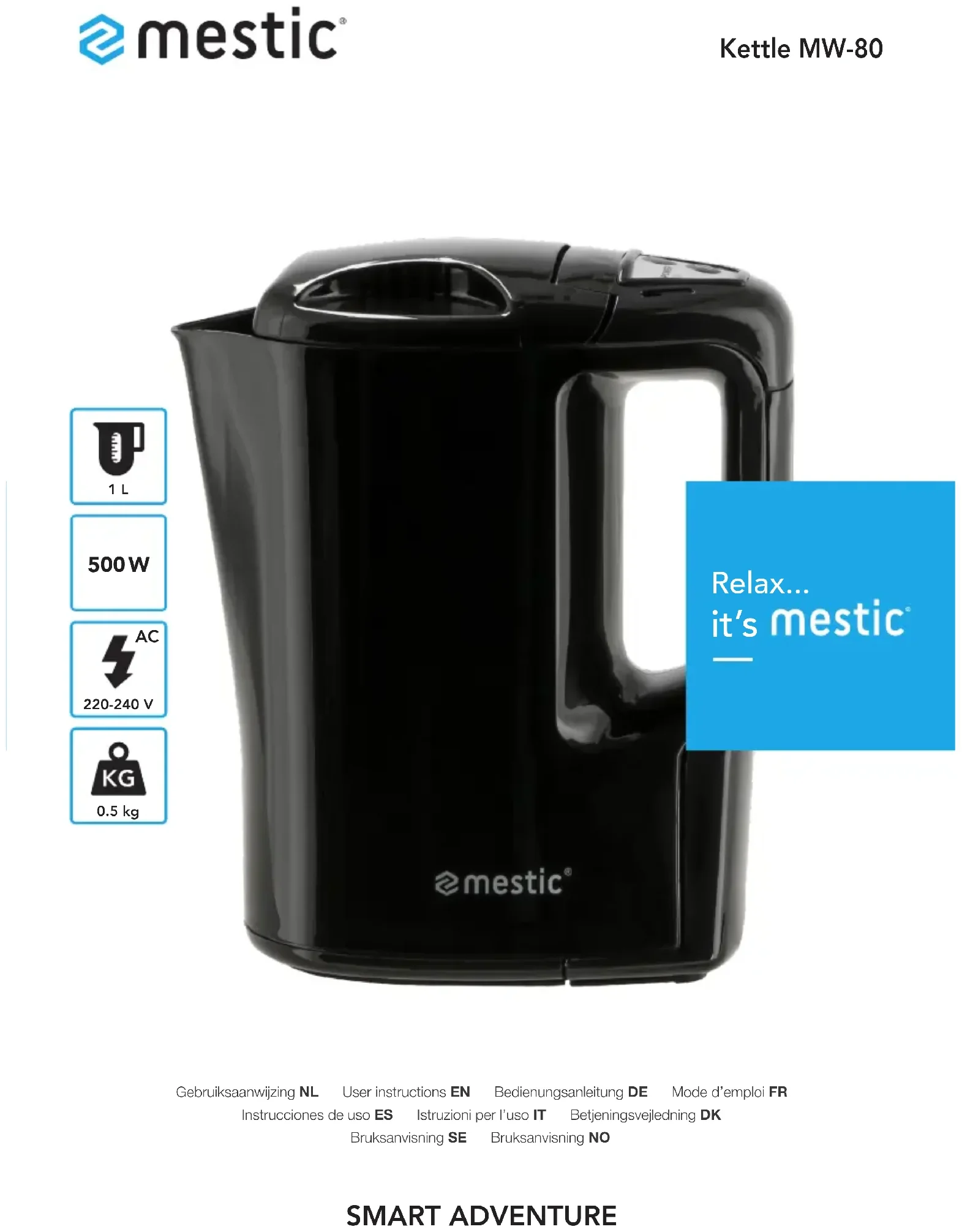 MWC-80 - Bouilloire Mestic - Notice d'utilisation et mode d'emploi gratuit