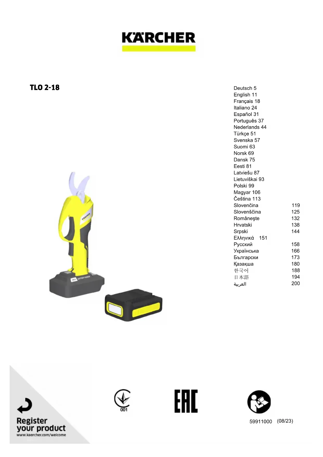 Retrouvez gratuitement la notice de l'appareil TLO 2-18 Kärcher au format PDF.