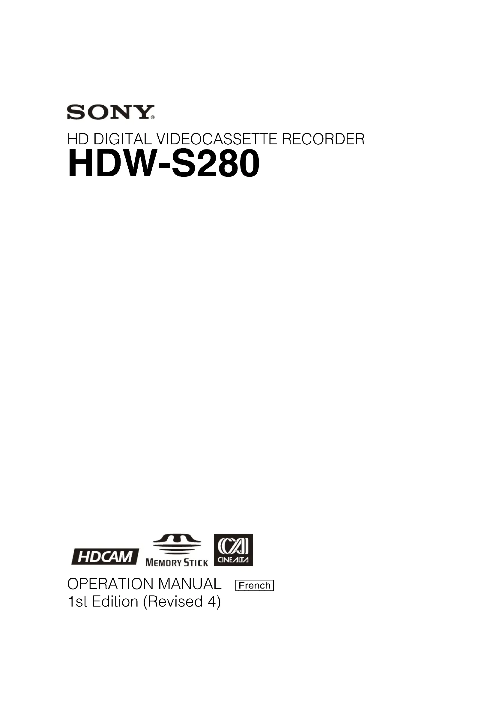 Retrouvez gratuitement la notice de l'appareil HDW-S280 SONY au format PDF.