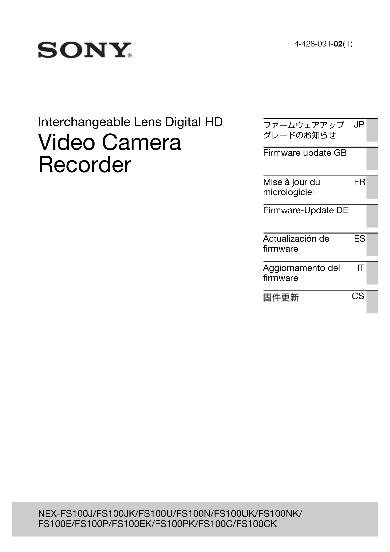 Retrouvez gratuitement la notice de l'appareil NEX-FS100NK SONY au format PDF.