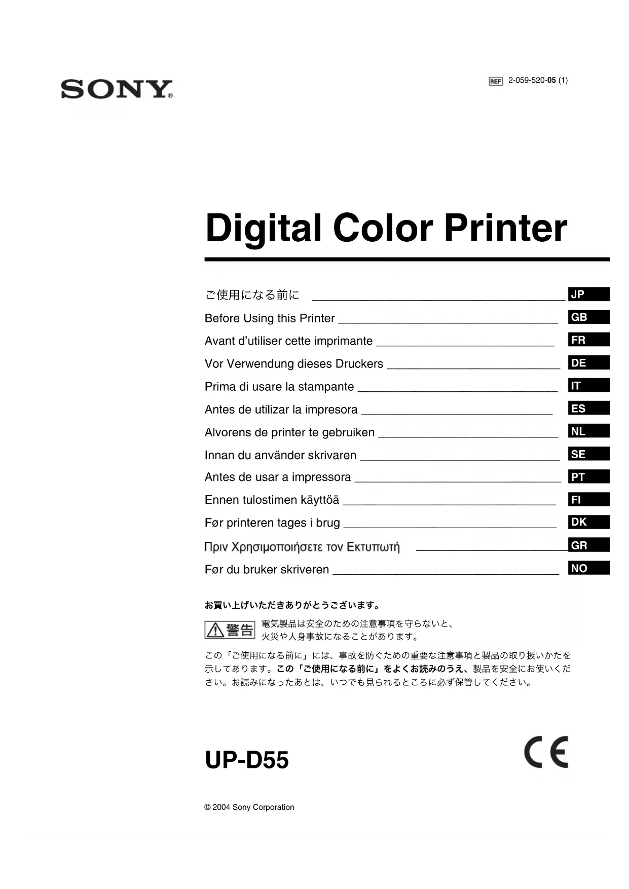 Retrouvez gratuitement la notice de l'appareil UP-D55 SONY au format PDF.