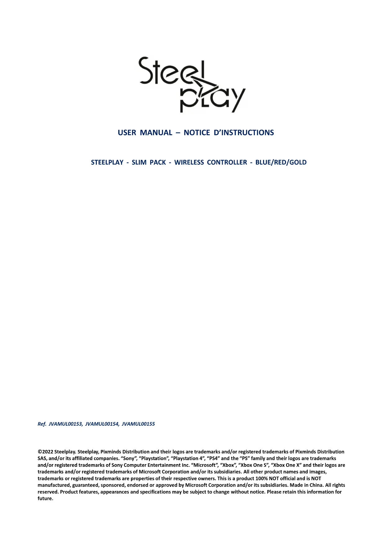 JVAMUL00153 - Contrôleur Steelplay - Notice d'utilisation et mode d'emploi gratuit