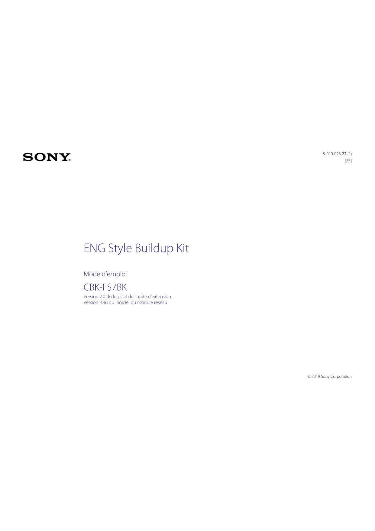 © 2019 Sony Corporation ENG Style Buildup Kit Mode d’emploi CBK-FS7BK Version 2.0 du logiciel de l’unité d’extension Version 3.46 du logiciel du module réseau 5-010-028-22 (1) FR0002