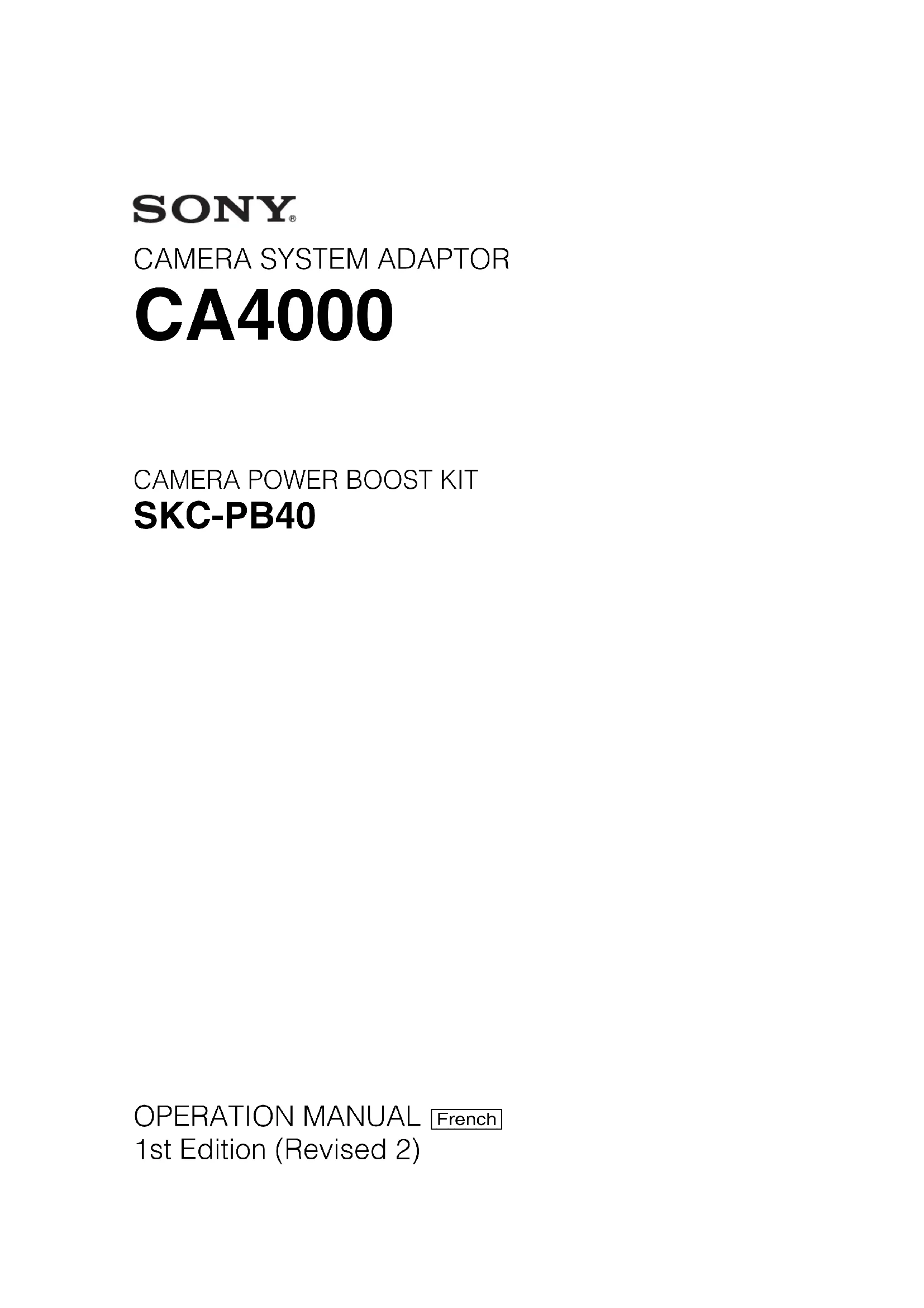 )Le materiel contenu dans ce manuel consiste en informations qui sont la propriete de Sony Corporation et sont destinees exclusivement a l’usage des acquereurs de l’equipement decrit dans ce manuel. Sony Corporation interdit formellement la copie de quelque partie que ce soit de ce manuel ou son emploi pour tout autre but que des operations ou entretiens de l’equipement a moins d’une permission ecrite de Sony Corporation.CA4000 (JN/SY/CE) 4-479-641-23 (1) © 2013 Sony Corporation