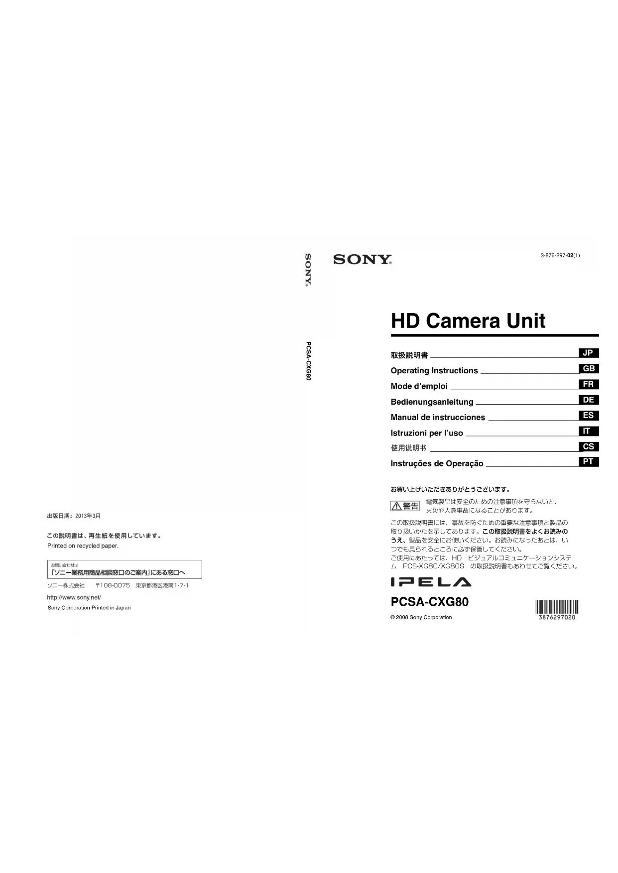 PCSA-CXG80 - Système de vidéo conférence SONY - Notice d'utilisation et mode d'emploi gratuit