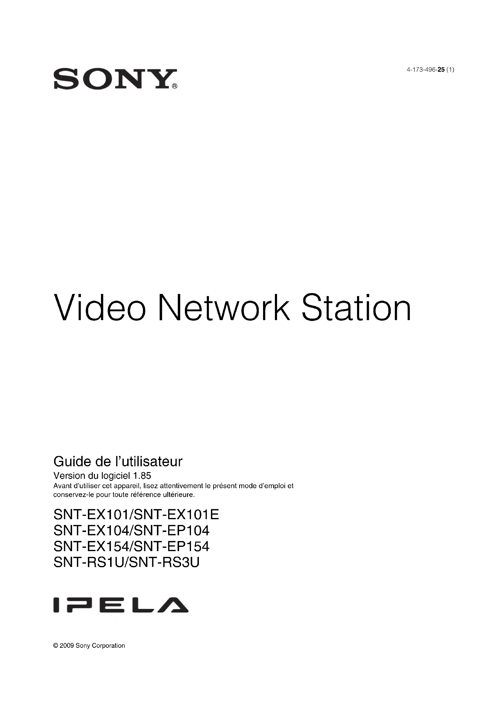 Video Network Station Guide de l’utilisateur Version du logiciel 1.85 Avant d’utiliser cet appareil, lisez attentivement le présent mode d’emploi et conservez-le pour toute référence ultérieure.