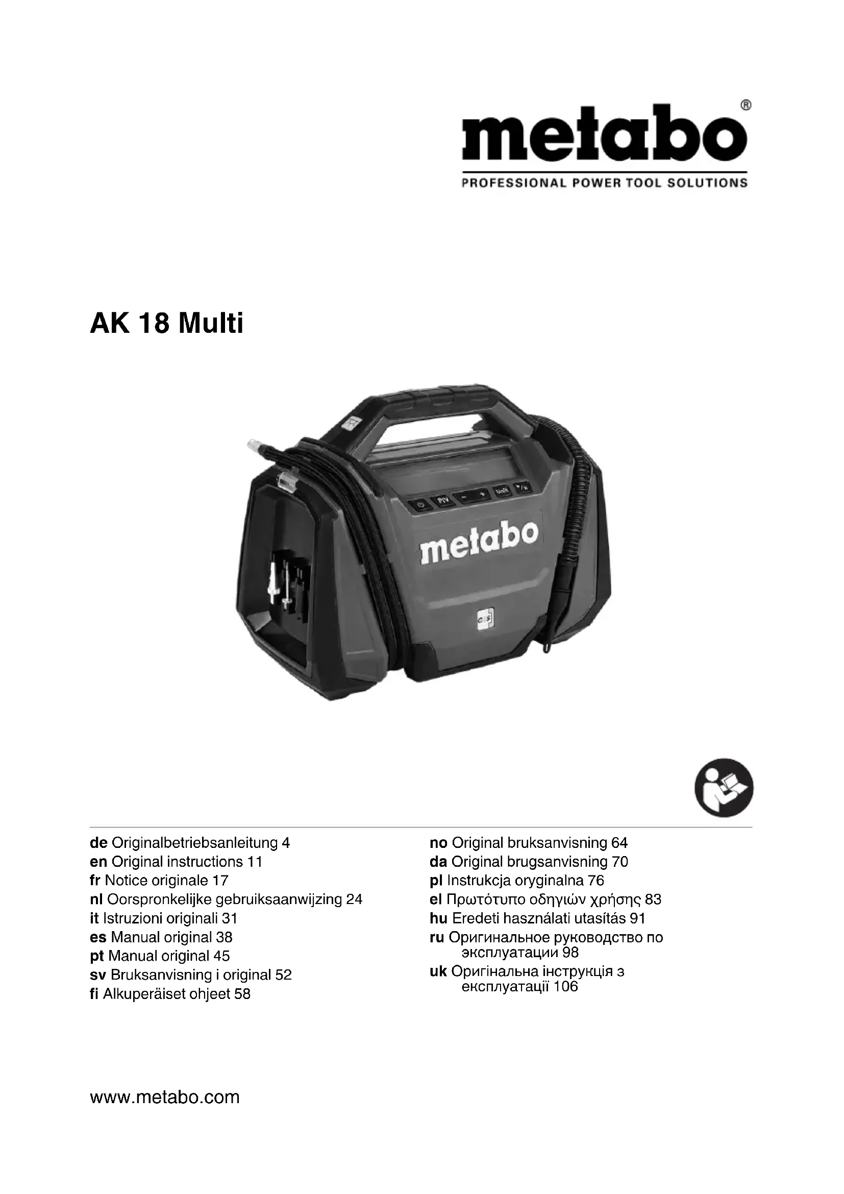 Retrouvez gratuitement la notice de l'appareil AK 18 Multi METABO au format PDF.