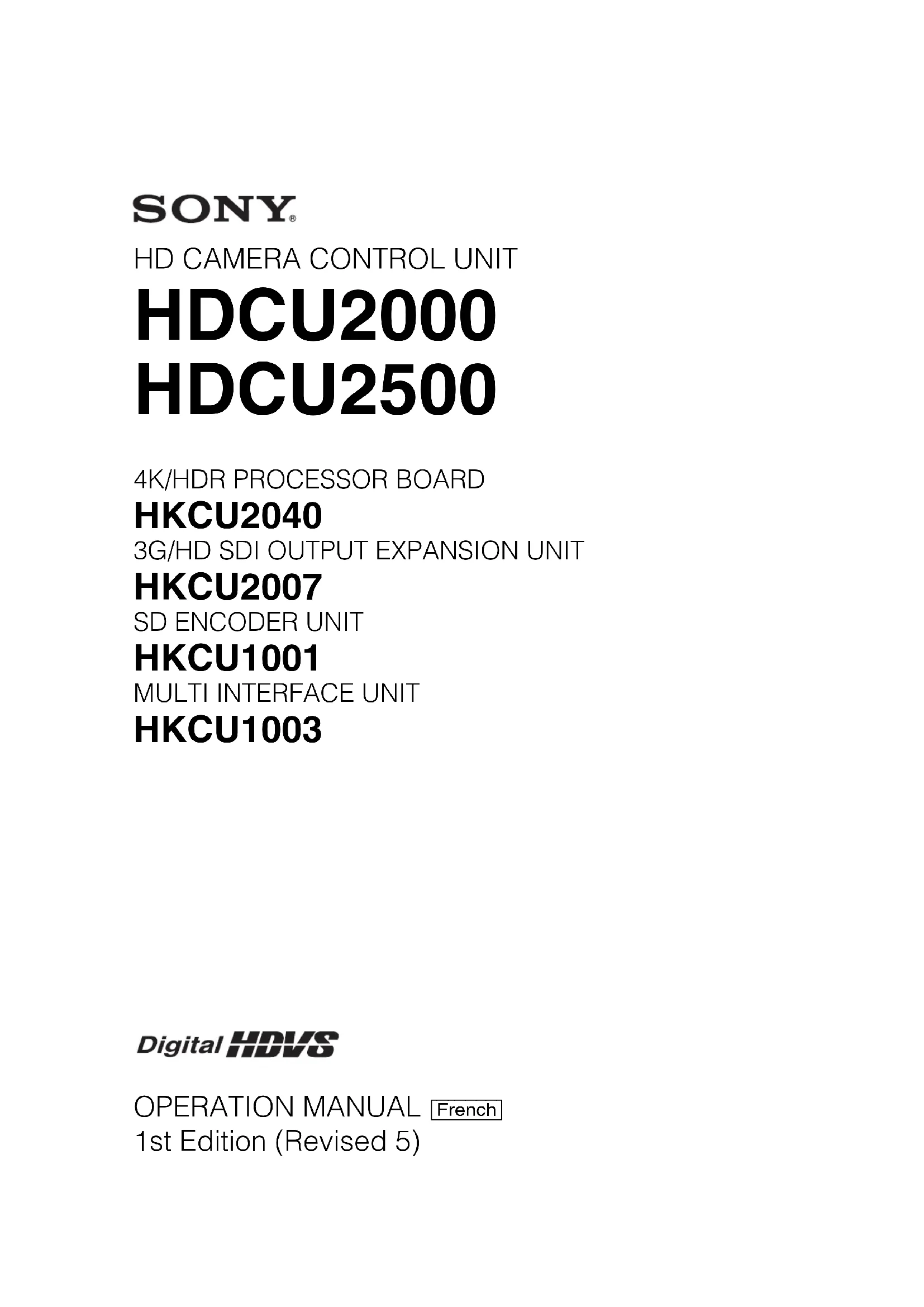 HDCU-2500 - Non catégorisé SONY - Notice d'utilisation et mode d'emploi gratuit
