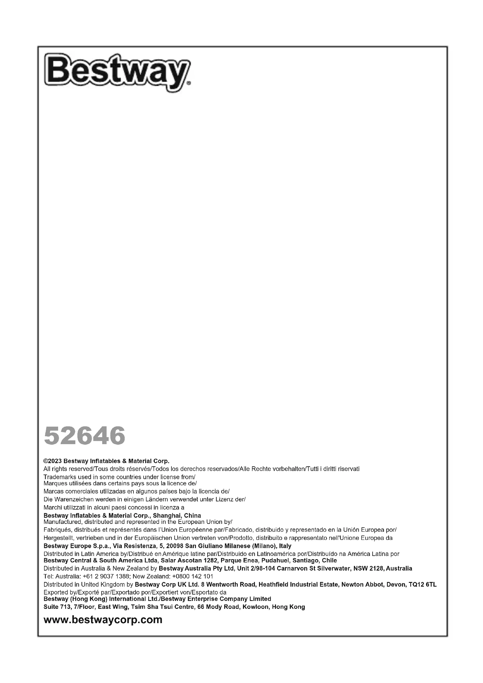Retrouvez gratuitement la notice de l'appareil 52646 BESTWAY au format PDF.