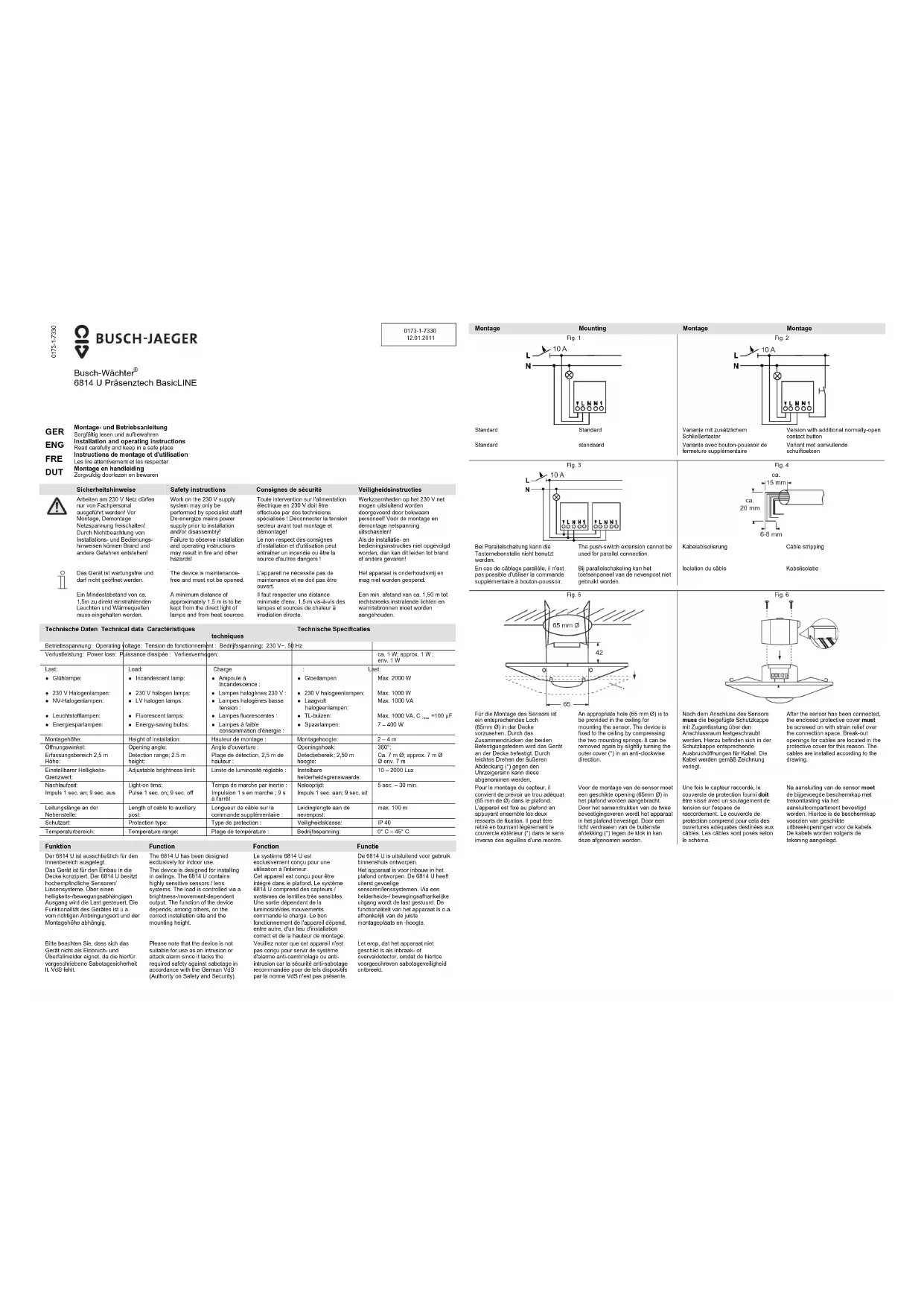 6814 U - Détecteur de mouvements Busch-Jaeger - Notice d'utilisation et mode d'emploi gratuit