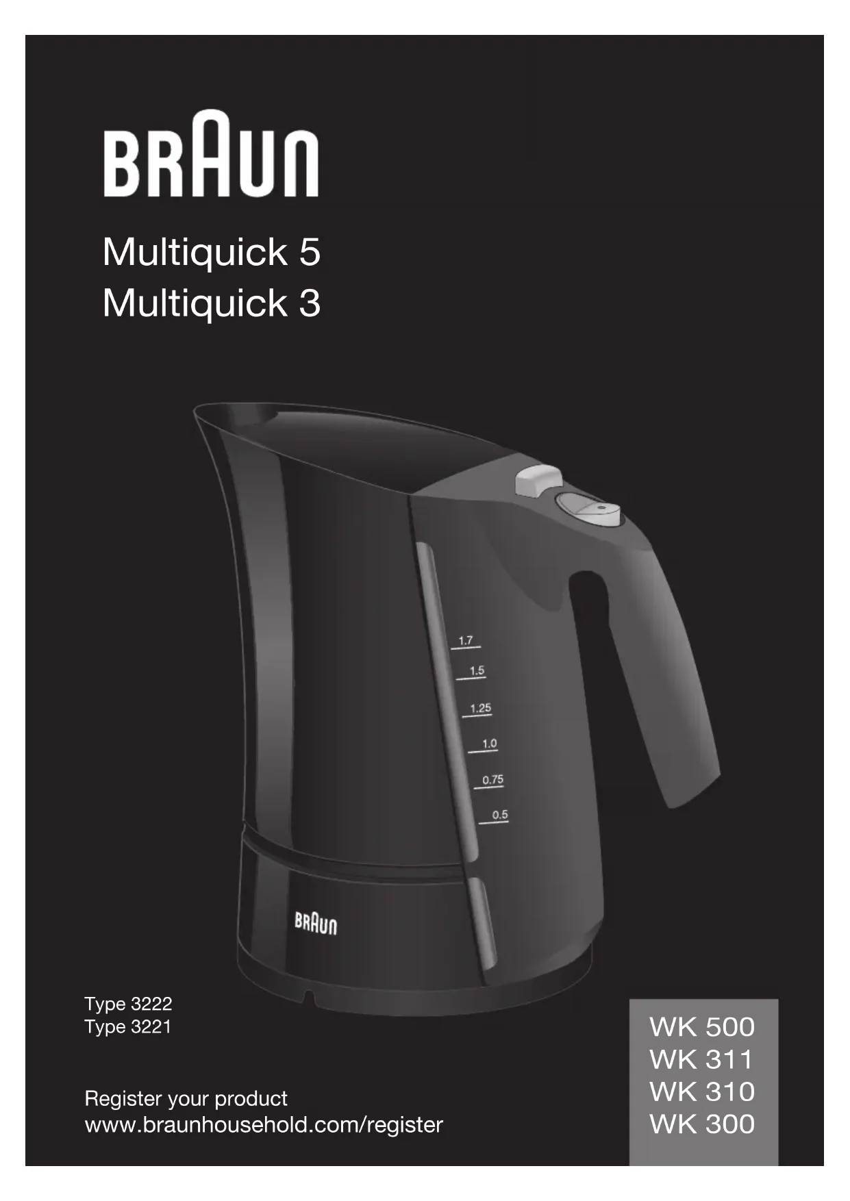 WK 500 - Bouilloire BRAUN - Notice d'utilisation et mode d'emploi gratuit