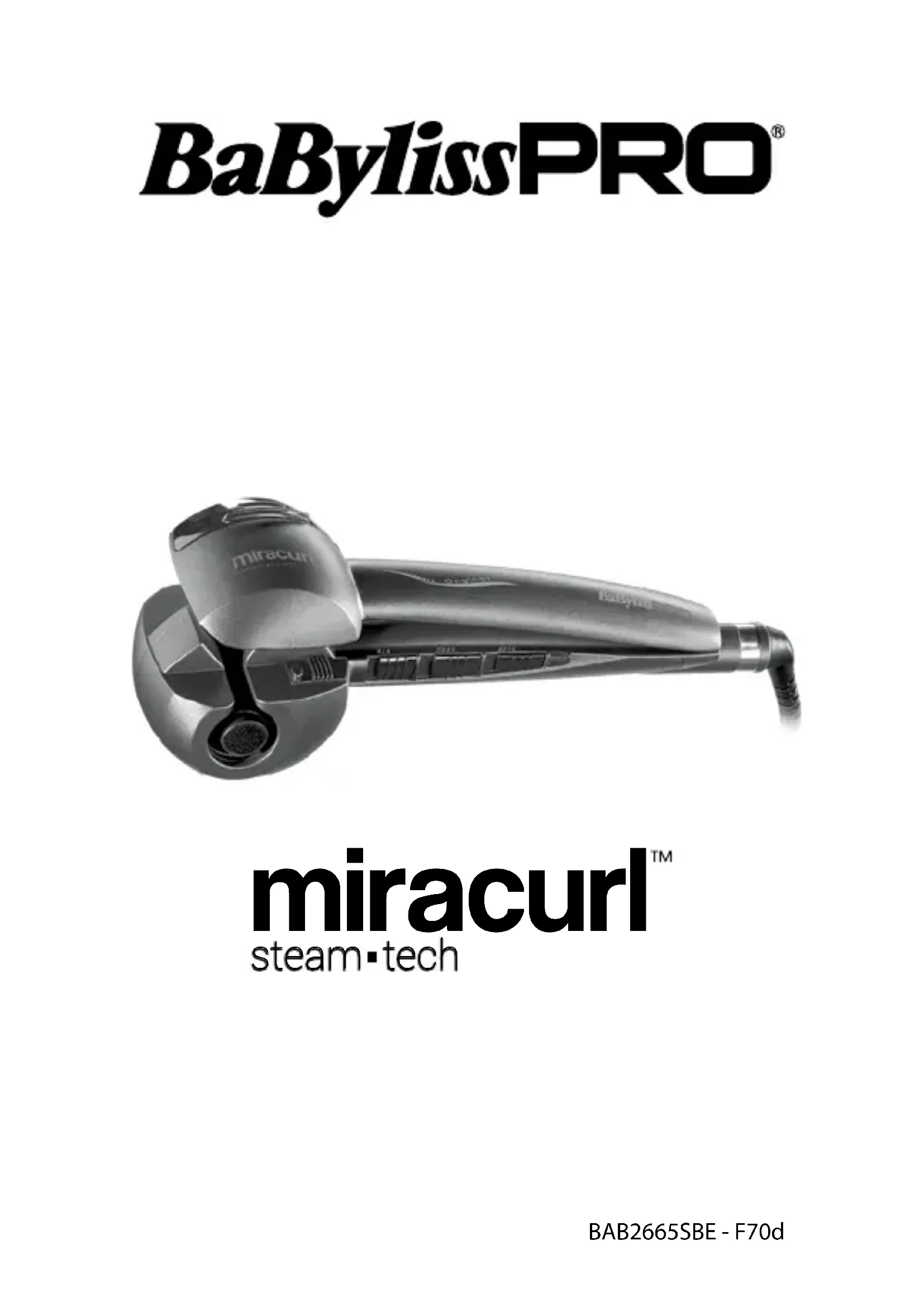 - L’outil de nettoyage peut être utilisé à de nombreuses reprises ;9 simplement enlever de temps en temps les patins en feutre de l’ou- til de nettoyage pour les rincer à l’eau tiède savonneuse. Les laisser sécher complétement avant de les utiliser à nouveau. RANGEMENT Lorsqu’il n’est pas utilisé, l’appareil est facile à ranger. Le laisser refroi- dir, le remettre ensuite dans sa boite et le conserver à l’écart des enfants dans un endroit sec et sûr. Ne jamais le débrancher du secteur d’un geste sec.10 Please carefully read the safety instructions before using the appliance. BaBylissPRO® MiraCurl™ SteamTech BAB2665SBE Eortlessly create long-lasting beauti- ful curls, with BaBylissPRO® MiraCurl™ SteamTech. Hair is automatically drawn into the Ceramic curl chamber where it is softly held and heated from all directions to eortlessly form the curl. Then, simply release. The result is beautiful, free- owing curls. MiraCurl™ SteamTech: . Create perfect curls every time . Adjust heat, time and curl type . Use with or without steam For in-depth beauty action and: . Extra-smooth curls . Extra-shine For long-lasting result and perfect curl formation. FEATURES