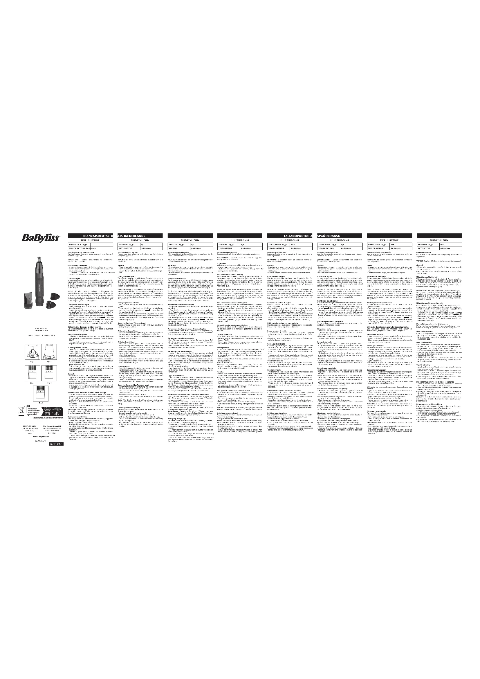 E116E - Tondeuse à barbe BABYLISS - Notice d'utilisation et mode d'emploi gratuit