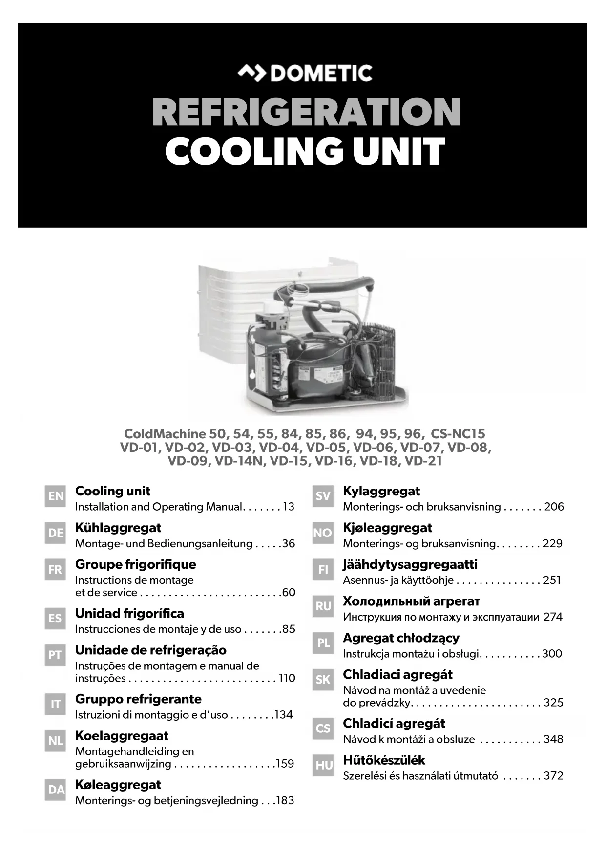 - des usages différents de ceux décrits dans le manuel. Dometic se réserve le droit de modifier l’apparence et les spécifications produit. 6 Description technique Les groupes frigorifiques sont adaptés à une alimentation 12 V ou 24 V CC ; ils conviennent donc au camping comme à la navigation de plaisance. Par ailleurs, vous pouvez les raccorder à une prise secteur 230 V par le biais des redresseurs (voir cha- pitre « Accessoires », page 63). En cas d’utilisation sur bateaux, le groupe frigorifique peut supporter un angle de gîte permanent de 30°. Le groupe frigorifique doit être utilisé avec un évaporateur. En outre, vous pouvez utiliser un accumulateur avec ou sans contrôleur TEC. Le CS-NC15 est composé d’un groupe de refroidissement et d’un évaporateur. Utilisez le thermostat variable de l’évaporateur pour sélectionner la température désirée. L’accumulateur et le contrôleur TEC assurent une capacité de refroidissement élevée et améliorent l’efficacité du groupe. L’accumulateur est chargé lorsque l’alimenta- tion électrique est suffisante (par exemple, lorsqu’il est raccordé à une prise secteur). En cas d’utilisation de l’accumulateur ou de sous-tension, le liquide de refroidisse- ment est puisé dans l’accumulateur jusqu’à ce qu’il soit vide. Ainsi, aucune alimenta- tion ne provient de la batterie pendant cette période. DometicColdMachine50-54-55-84-85-86-94-95-96-CS-NC15_IOM_4445100001_EMEA16_20xx-xx-xx.book Page 64 Tuesday, May 4, 2021 7:24 PMFR Coldmachine Description technique
