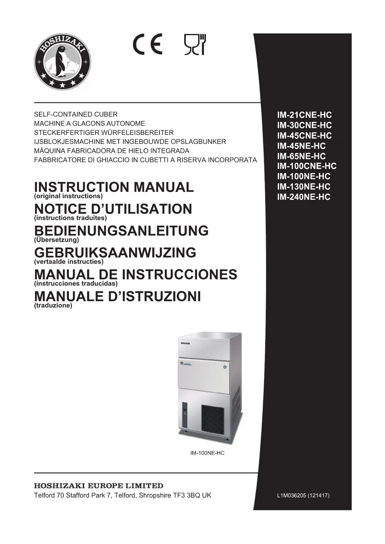 Retrouvez gratuitement la notice de l'appareil IM-65NE-HC-LM103 Hoshizaki au format PDF.