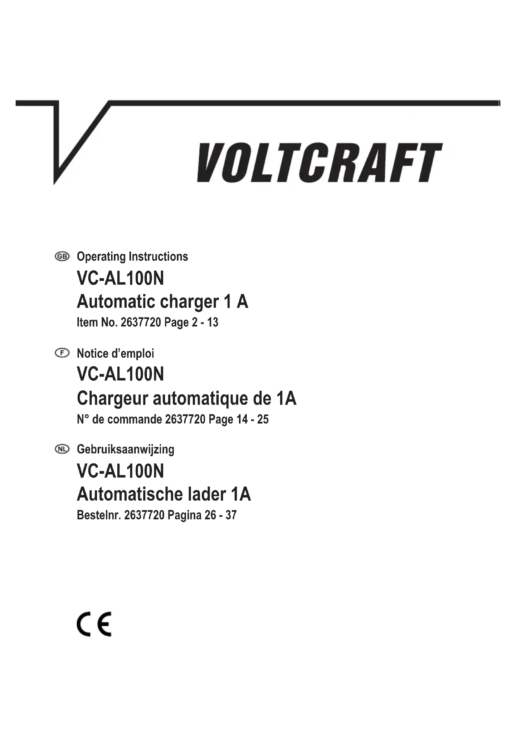 Retrouvez gratuitement la notice de l'appareil VC-AL100N VOLTCRAFT au format PDF.