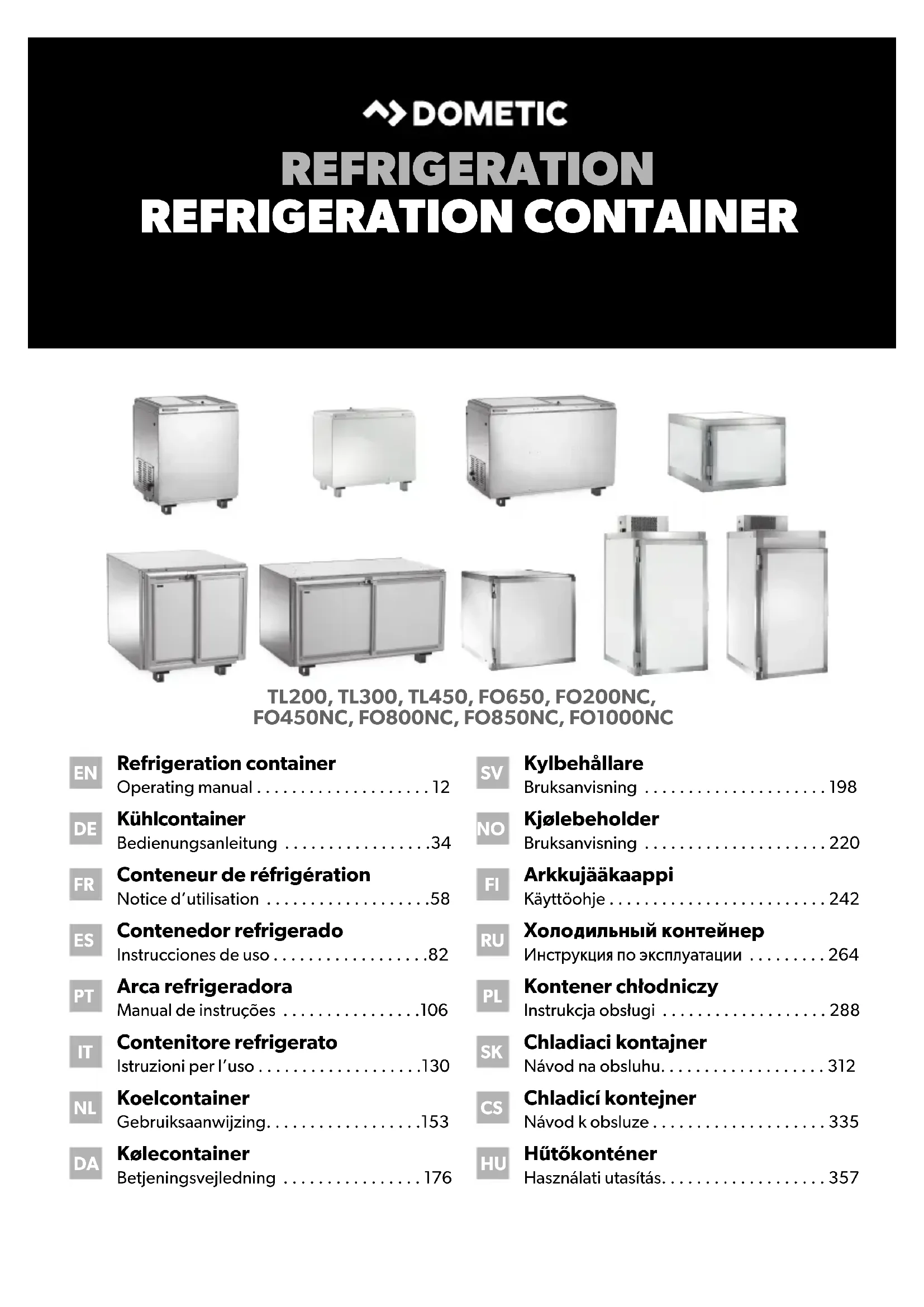 - des usages différents de ceux décrits dans le manuel. Dometic se réserve le droit de modifier l’apparence et les spécifications produit. 6 Description technique Le conteneur de réfrigération peut refroidir et congeler des aliments à une tempéra- ture constante de +4 °C et –18 °C (TL200, TL300, TL450, FO650) ou les refroidir à +4 °C (FO200NC, FO450NC, FO800NC, FO850NC, FO1000NC). La réfrigéra- tion est assurée par un circuit de refroidissement à compresseur qui ne nécessite aucune maintenance. Le conteneur de réfrigération peut, selon le modèle, fonctionner sur une alimenta- tion en courant alternatif ou en courant continu. Le conteneur de réfrigération dispose d’un verrouillage du couvercle (pas FO800NC, FO1000NC) et d’un support pour sangle. TL200-450-600-FO200-450-600-800-1000_OPM_4445102370_EMEA16_202x-xx-xx.book Seite 64 Sonntag, 21. März 2021 1:13 13FR TL, FO Description technique