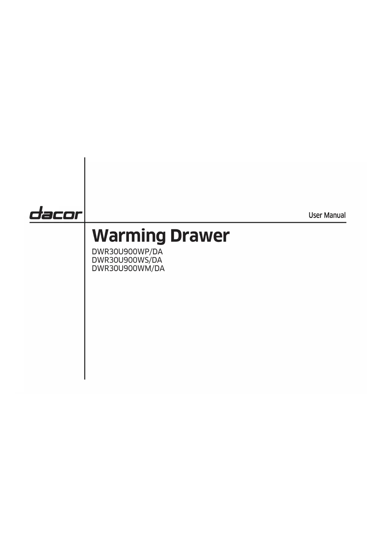 DWR30U900WS/DA - Tiroir et armoire chauffants Dacor - Notice d'utilisation et mode d'emploi gratuit