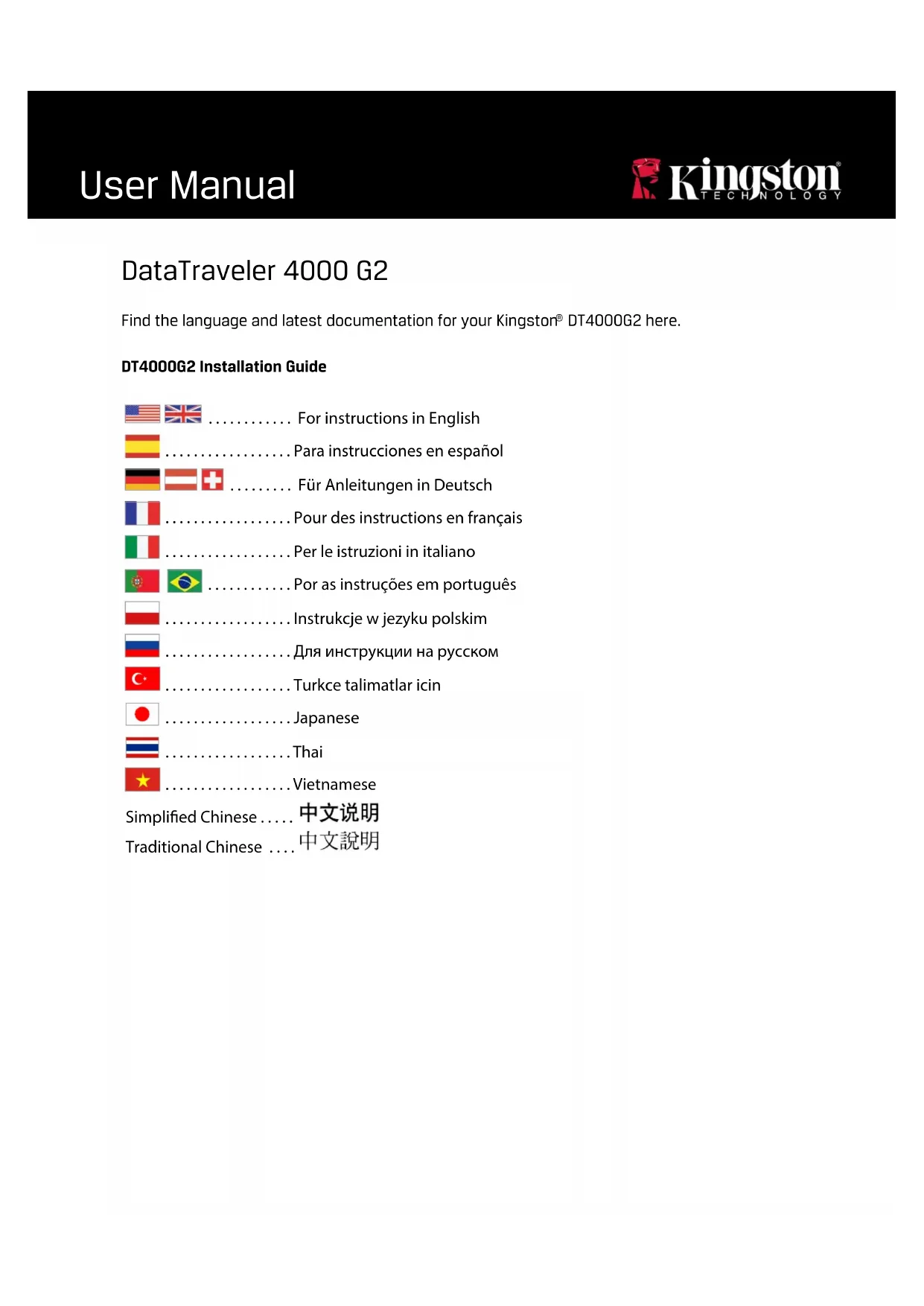 Téléchargez la notice de votre Clé USB au format PDF gratuitement ! Retrouvez votre notice DataTraveler 4000 G2 - KINGSTON et reprennez votre appareil électronique en main. Sur cette page sont publiés tous les documents nécessaires à l'utilisation de votre appareil DataTraveler 4000 G2 de la marque KINGSTON.