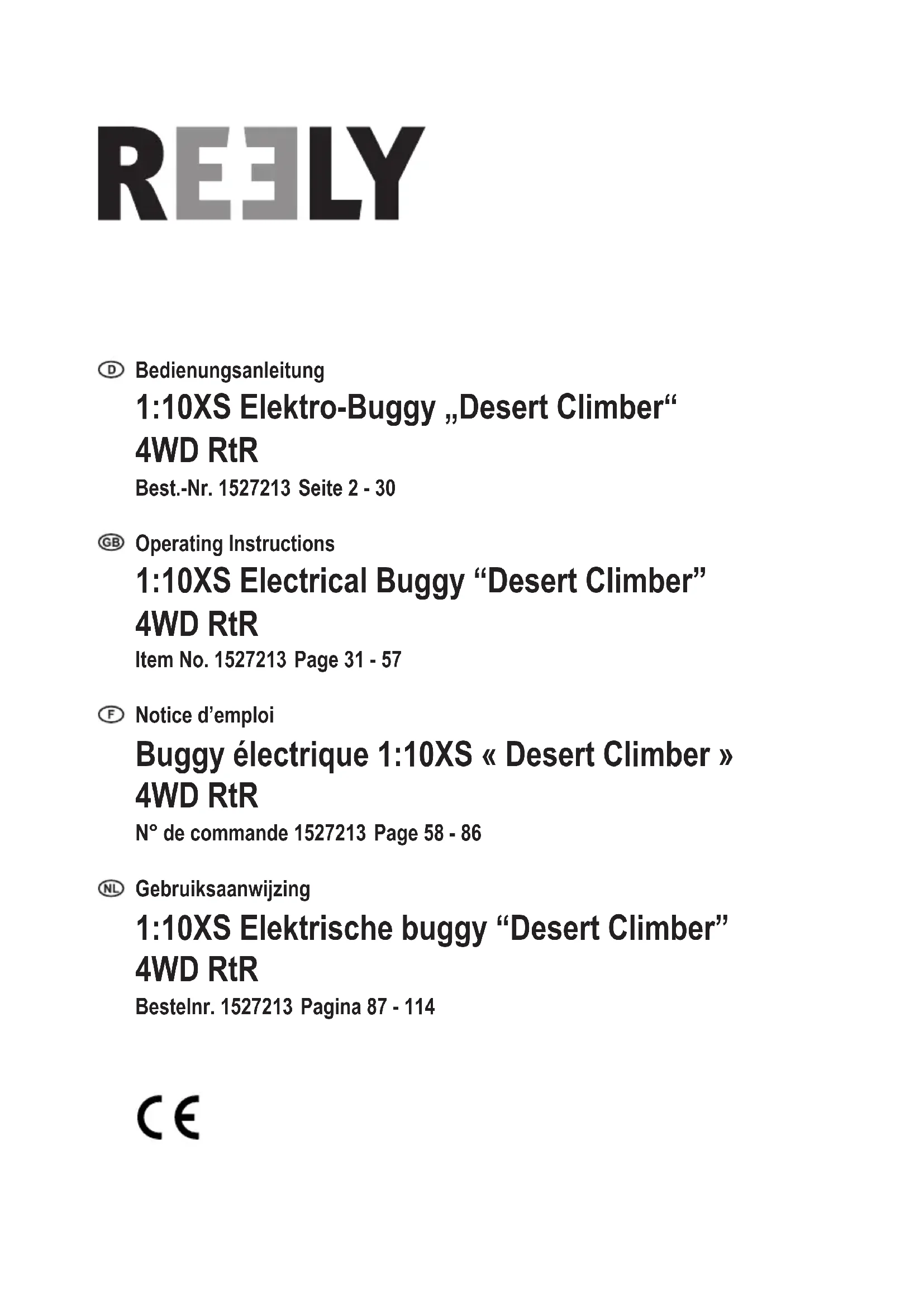 Retrouvez gratuitement la notice de l'appareil Desert Climber Reely au format PDF.
