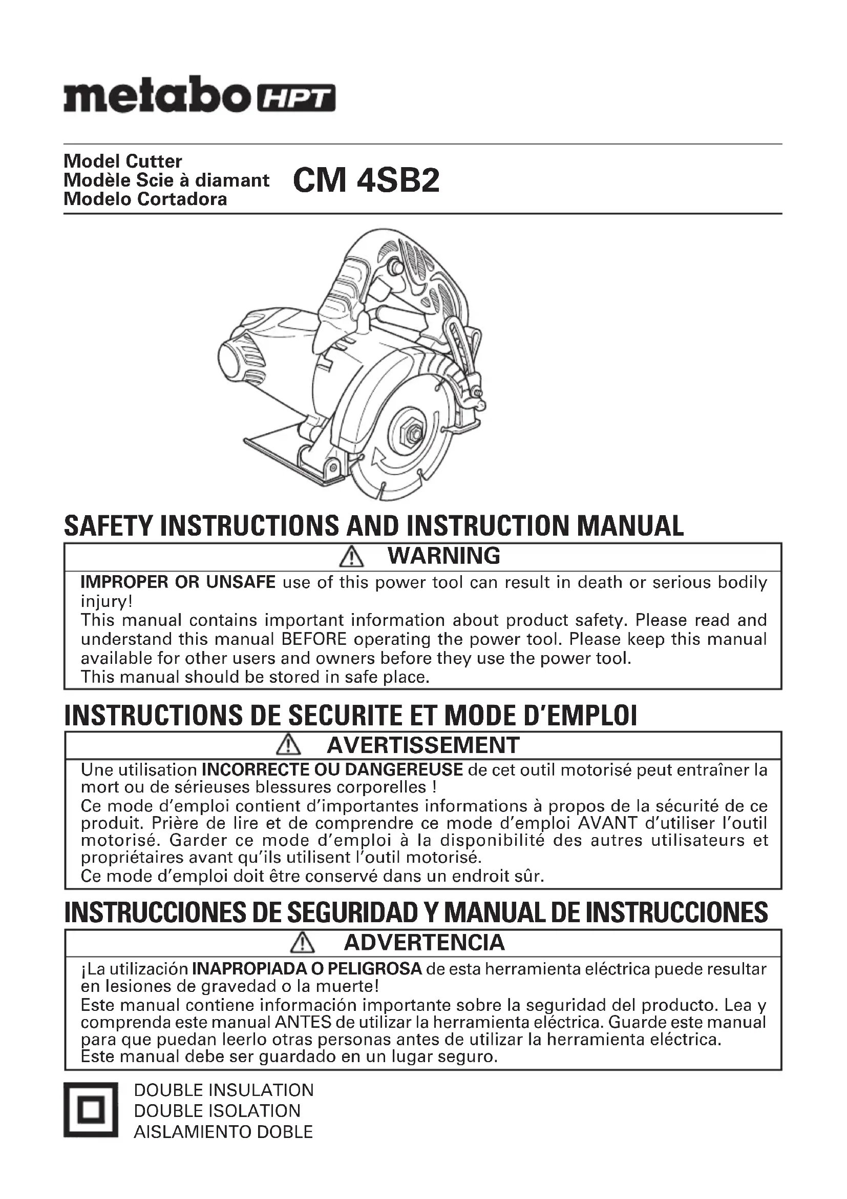 Retrouvez gratuitement la notice de l'appareil CM4SB2 METABO au format PDF.