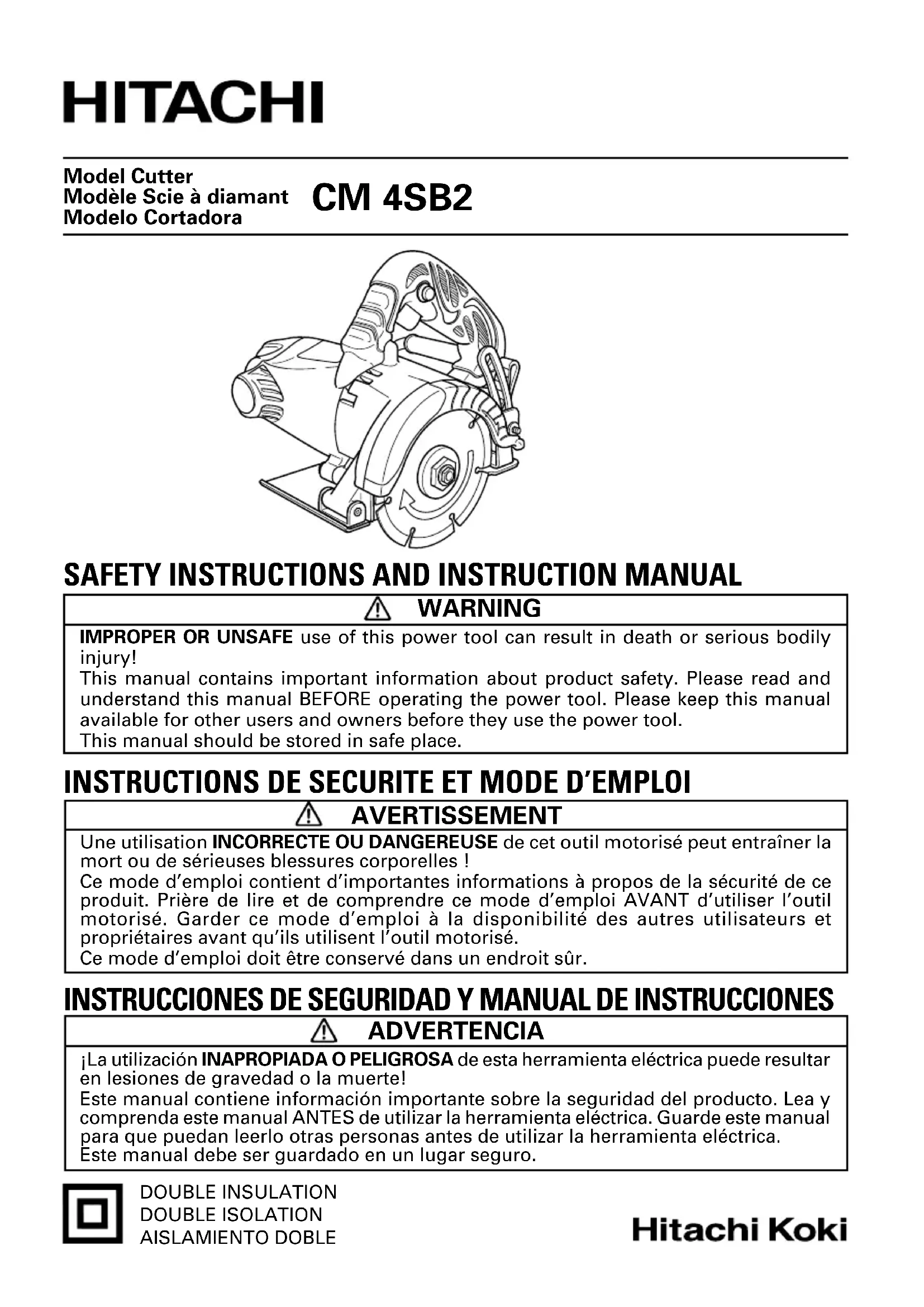 Téléchargez la notice de votre Scie au format PDF gratuitement ! Retrouvez votre notice CM4SB2 - HITACHI et reprennez votre appareil électronique en main. Sur cette page sont publiés tous les documents nécessaires à l'utilisation de votre appareil CM4SB2 de la marque HITACHI.