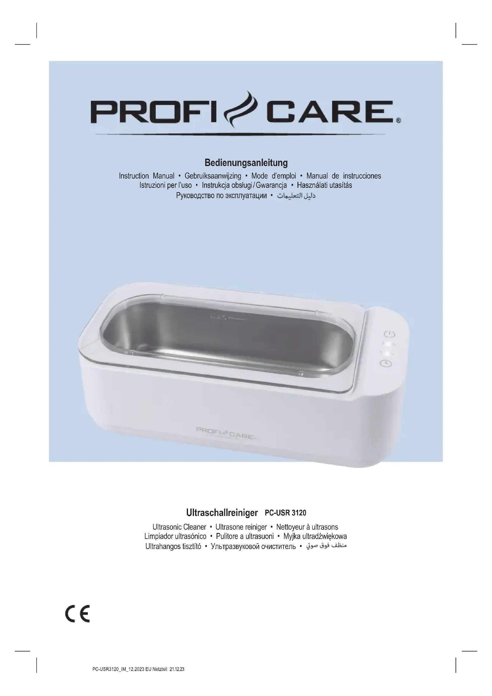 PC-USR 3120 - Nettoyeur à ultrasons ProfiCare - Notice d'utilisation et mode d'emploi gratuit