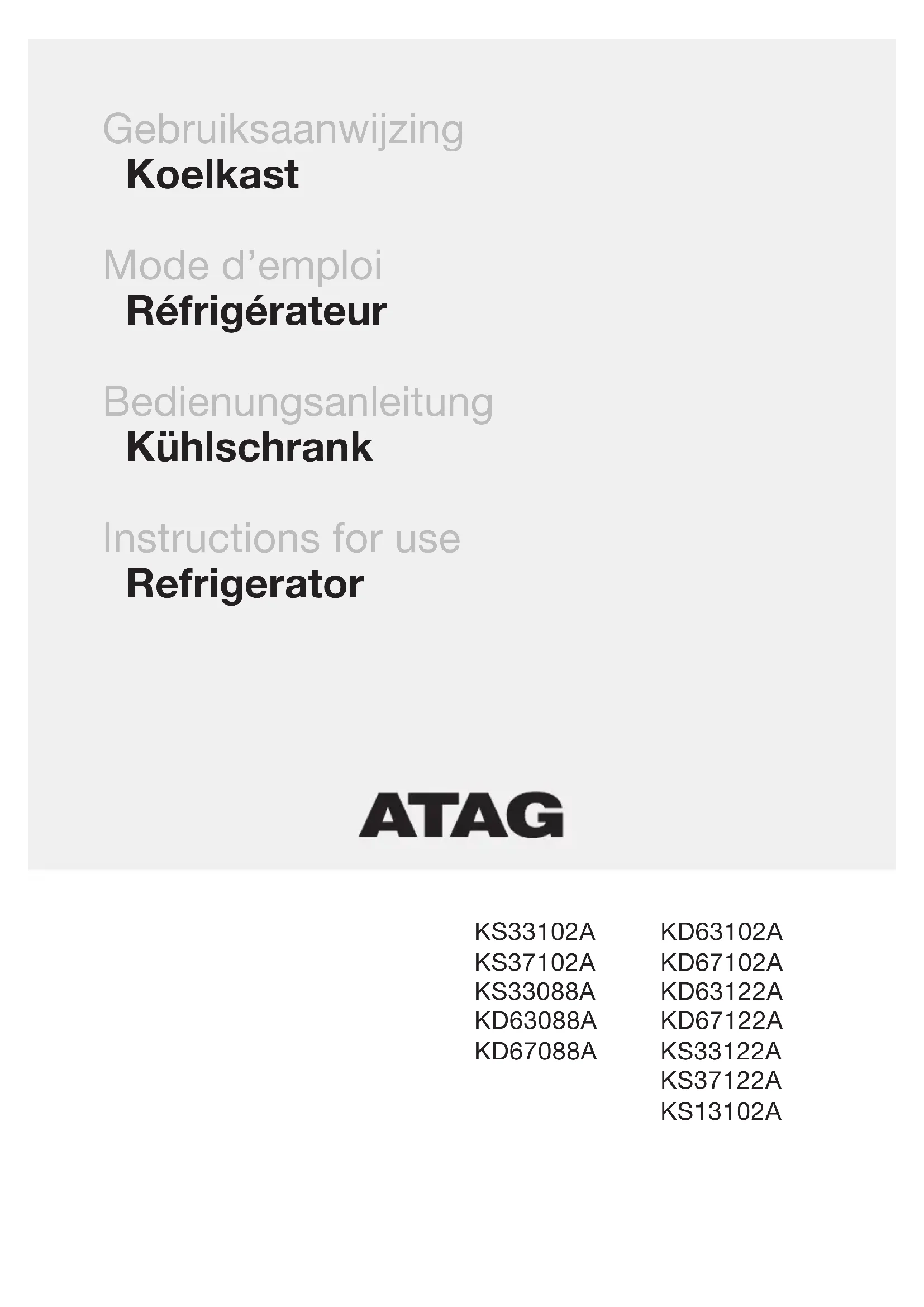 KS37102A - Réfrigérateur Atag - Notice d'utilisation et mode d'emploi gratuit