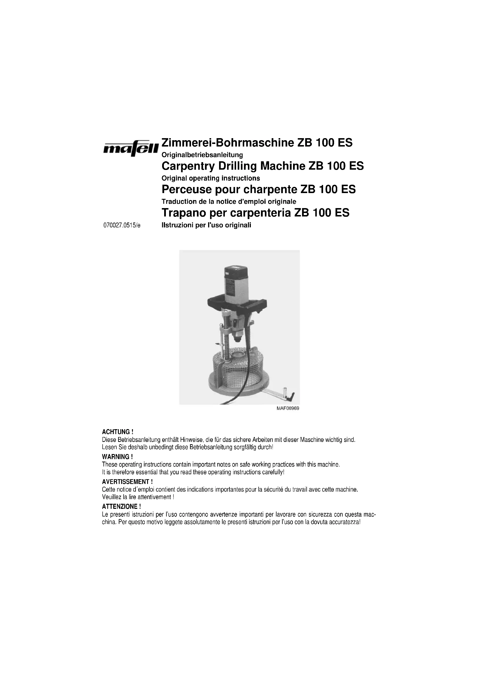 Retrouvez gratuitement la notice de l'appareil ZB 100 ES Mafell au format PDF.