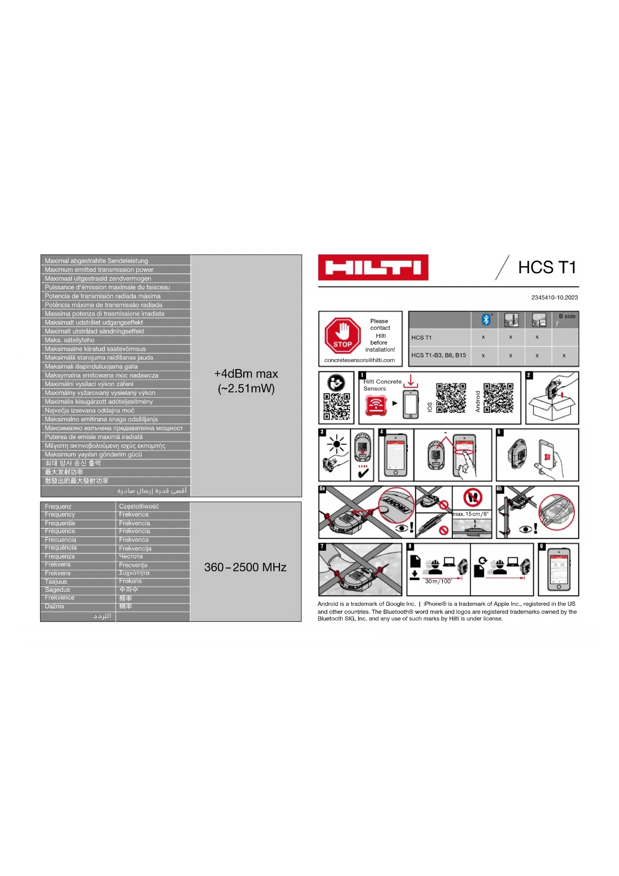 Retrouvez gratuitement la notice de l'appareil HCS T1 HILTI au format PDF.