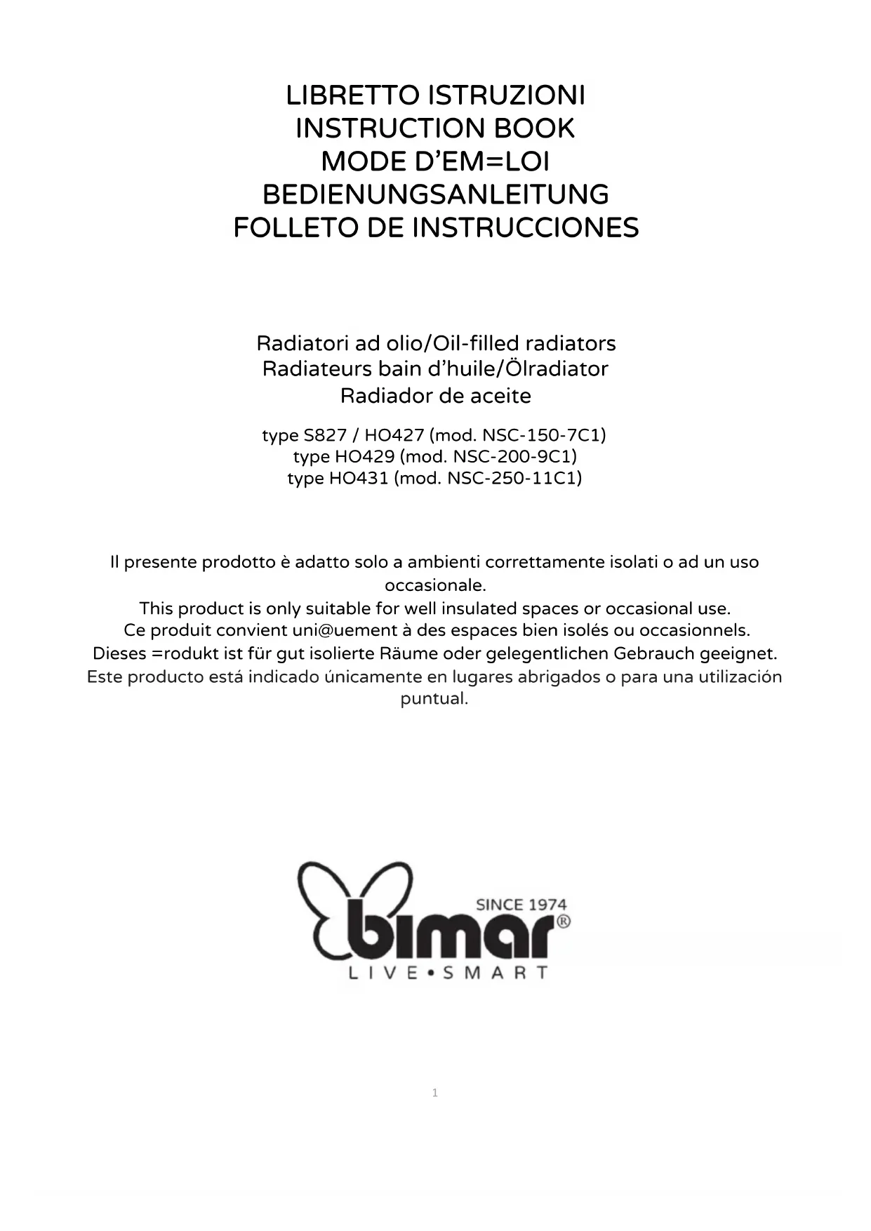 S827 - Chauffage Bimar - Notice d'utilisation et mode d'emploi gratuit