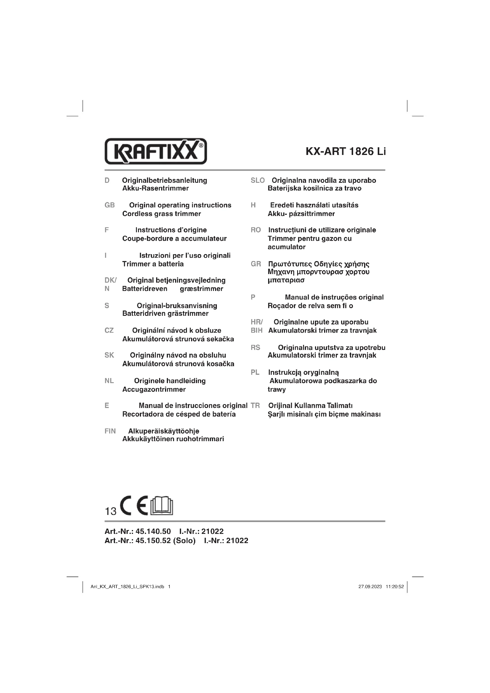 KX-ART 1826 Li - Coupe-herbe Kraftixx - Notice d'utilisation et mode d'emploi gratuit