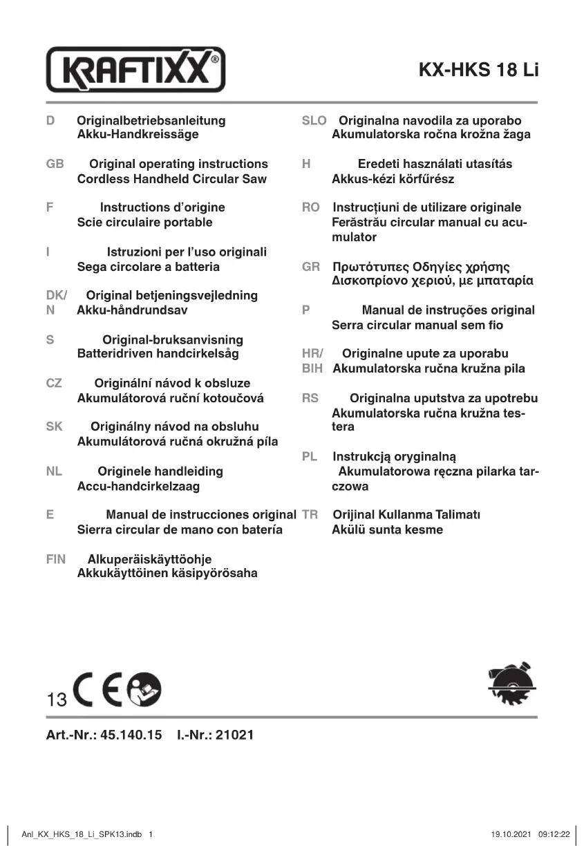 KX-HKS 18 Li - Scie Kraftixx - Notice d'utilisation et mode d'emploi gratuit