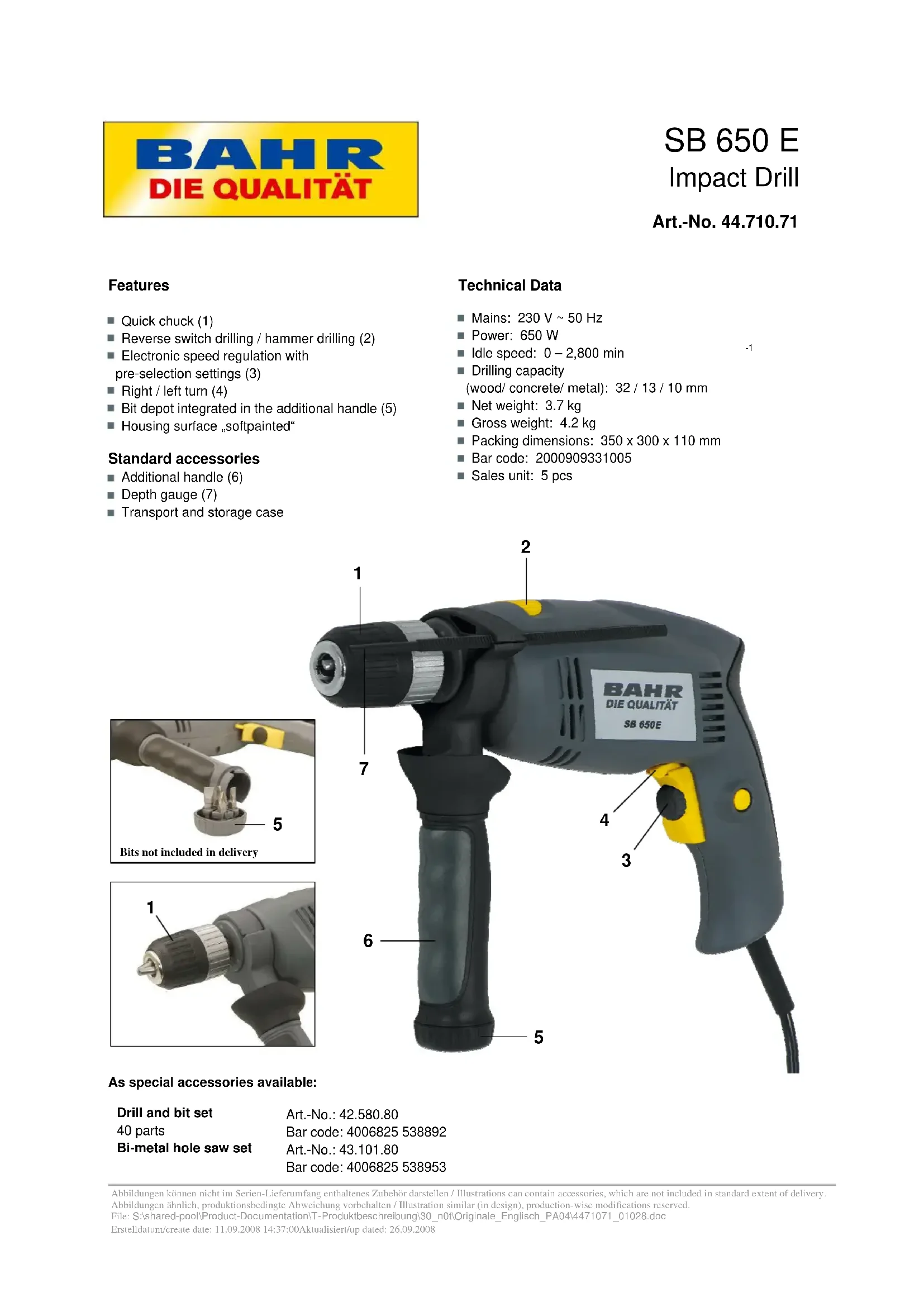SB 650 E - Perceuse Max Bahr - Notice d'utilisation et mode d'emploi gratuit