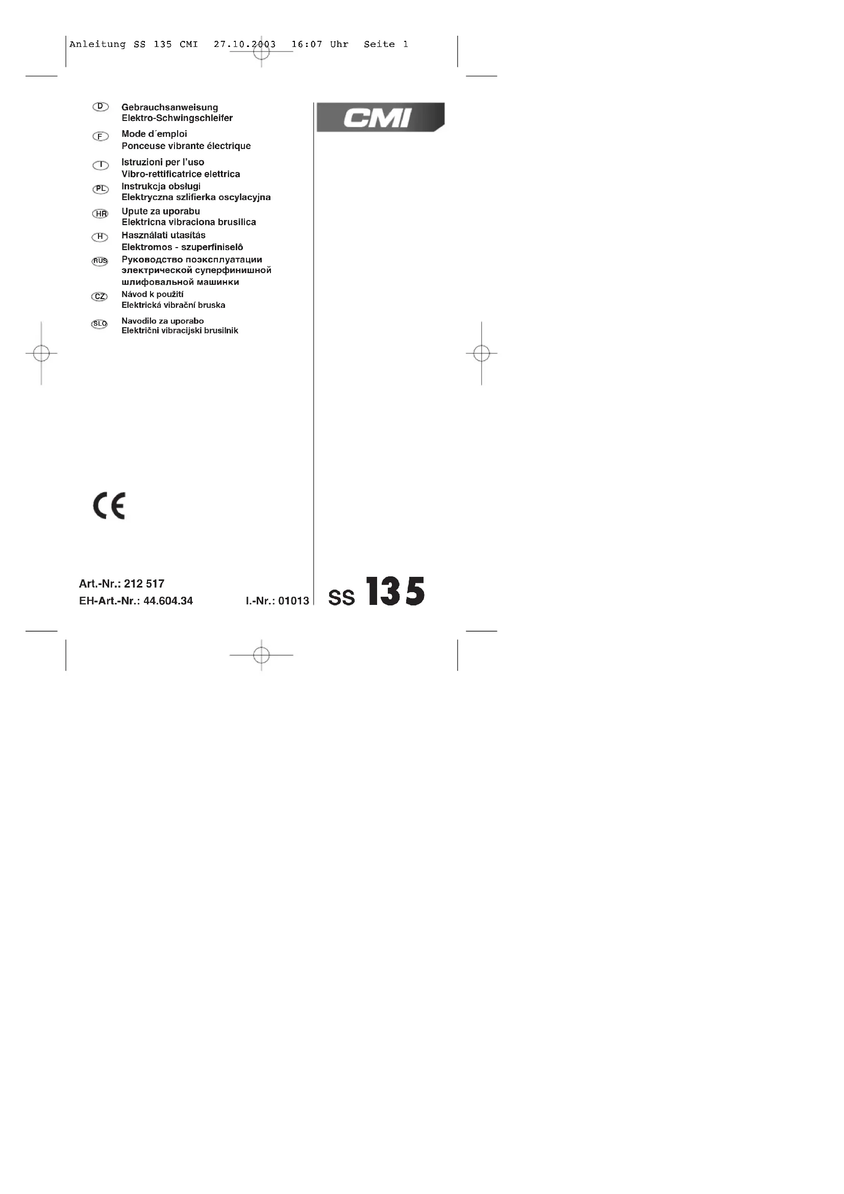 SS 135 - Ponceuse CMI - Notice d'utilisation et mode d'emploi gratuit