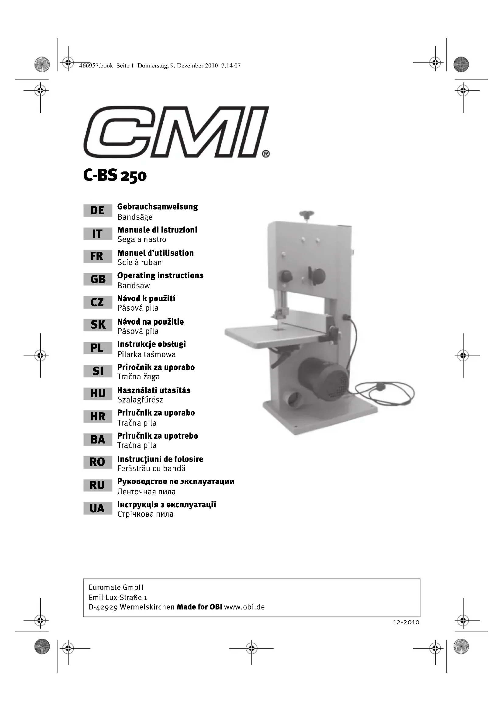 C-BS 250 - Scie CMI - Notice d'utilisation et mode d'emploi gratuit