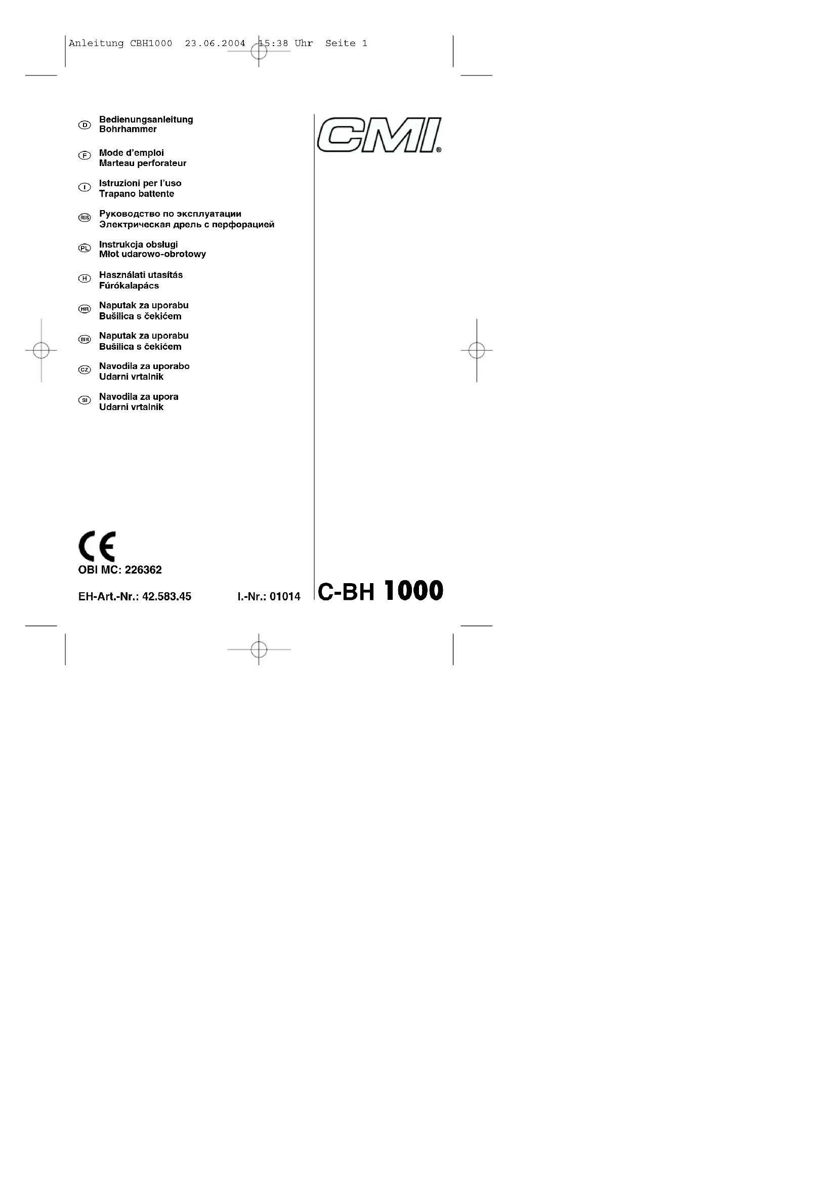 C-BH 1000 - Marteau CMI - Notice d'utilisation et mode d'emploi gratuit