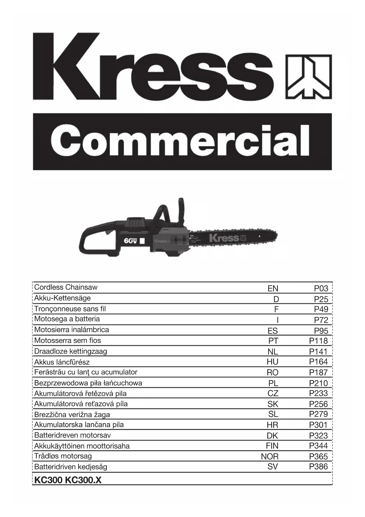 - DÉCLARATION DE CONFORMITÉ INTRODUCTION Cher Client, Merci d’avoir acheté ce produit de la marque Kress Commercial. Nous nous engageons à développer des produits de haute qualité pour répondre à vos exigences d'aménagement paysager. La marque Kress est synonyme de service de qualité supérieure. Au cours des années d'utilisation de votre produit, si vous avez des questions ou des inquiétudes à son sujet, veuillez contacter votre revendeur ou notre équipe de service clientèle pour obtenir de l'aide. Nous espérons que vous serez satisfait de votre produit de la marque Kress pour les années à venir. p. 71