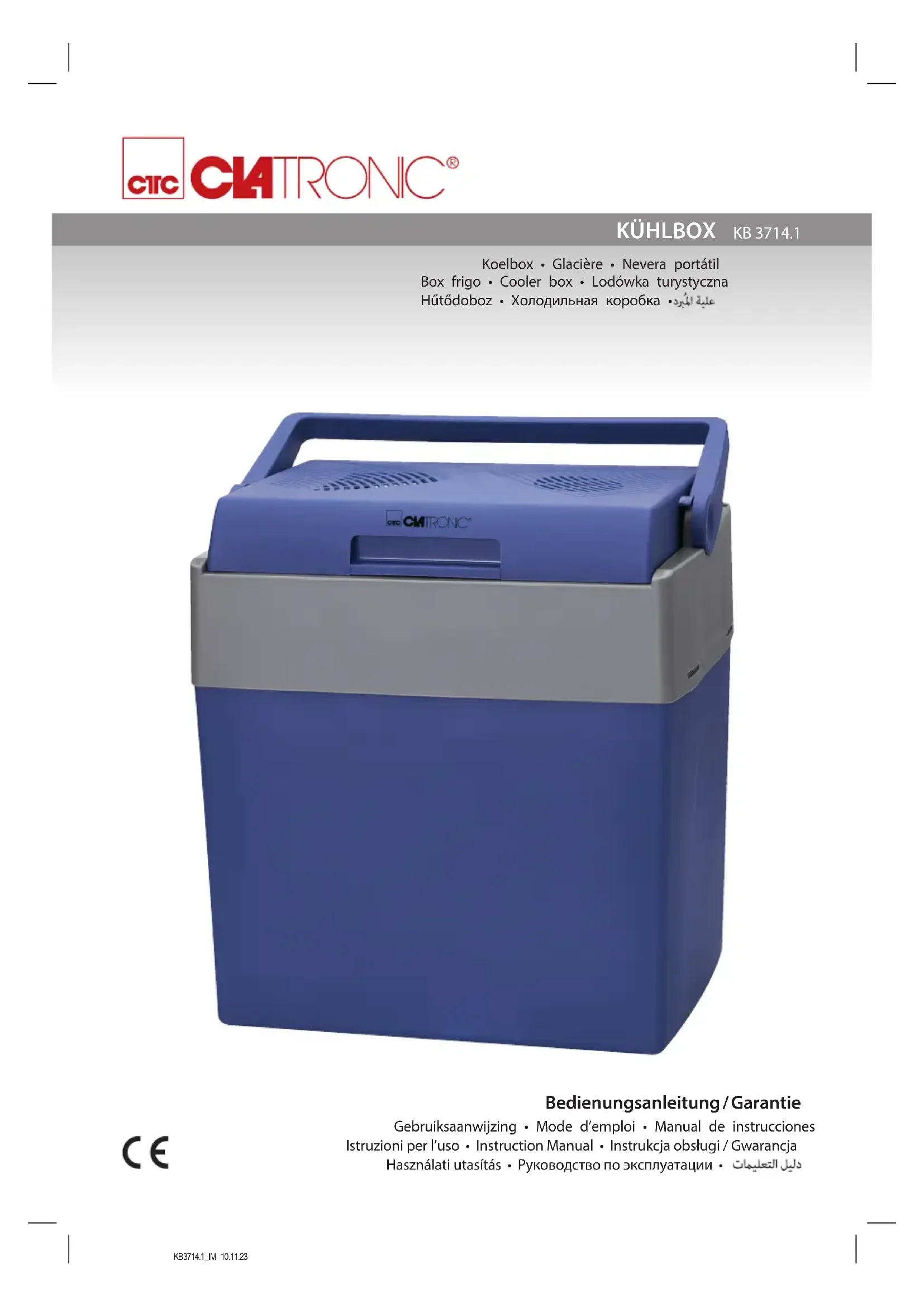 fonctionne pas. Le réglage du bouton n’a pas été correctement sélectionné. Vériez le réglage du bouton. Absence d’ali- mentation. Vériez le branchement à la source d’énergie. Vériez la prise élec- trique domestique avec un autre appareil. Vériez la boîte à fusibles. L’allume-cigare de votre véhicule motorisé fonctionne-t-il sans problème ? L’appareil est en panne. Contactez notre service ou un spécialiste. L’appareil ne fonc- tionne pas avec du courant continu. Le fusible dans la che du cordon électrique 12 V est défectueux. Remplacez le fusible. Vous pouvez vous en procurer auprès d’un spécialiste. L’allume-cigare de votre véhicule motorisé est défectueux. Contactez un spécialiste de véhicules motorisés. L’appareil s’arrête pendant son utili- sation Ventilation insuf- sante. Dégagez les fentes de ventilation Placez l’appareil an que l’air puisse circuler librement. Données techniques Modèle : .................................................................KB 3714.1 Classe de protection : .......................................................... Poids net : ..............................................................env. 4,3 kg Capacité : .......................................................... max. 28 litres Courant alternatif Alimentation : .................................... 220 – 240 V~, 50 – 60 Hz Puissance consommée en mode refroidissement MAX : ..................................................................... 55 W MIN : ........................................................................ 8 W ECO : ..................................................................... 25 W Puissance consommée en mode maintien au chaud MAX : ..................................................................... 50 W MIN : .....................................................................7,5 W ECO : ..................................................................... 24 W Courant continu Alimentation : ............................................................. 12 V Puissance consommée en mode refroidissement : .......45 W Puissance consommée en mode maintien au chaud : ..40 W Nous nous réservons le droit d’apporter des modications techniques ainsi que des modications de conception dans le cadre du développement continu de nos produits. Cet appareil a été testé conformément à toutes les direc- tives CE applicables et actuelles et a été construit selon les dernières réglementations en matière de sécurité. Élimination Signification du symbole « Poubelle » Protégez votre environnement, ne jetez pas vos appareils électriques avec les ordures ména- gères. Utilisez, pour l’élimination de vos appareils électriques, les bornes de collecte prévues à cet effet où vous pouvez vous débarrasser des appareils que vous n’utilisez plus. Vous contribuez ainsi à éviter les impacts potentiels dans l’environnement et sur la santé de chacun, causés par une mauvaise élimination de ces déchets. Vous contribuez aussi au recyclage sous toutes ses formes des appareils électriques et électroniques usagés. Vous trouverez toutes les informations sur les bornes d’élimination des appareils auprès de votre commune ou de l’administration de votre communauté. Votre revendeur et partenaire contractuel est également tenu de reprendre gratuitement l’ancien appareil.KB3714.1_IM 10.11.23