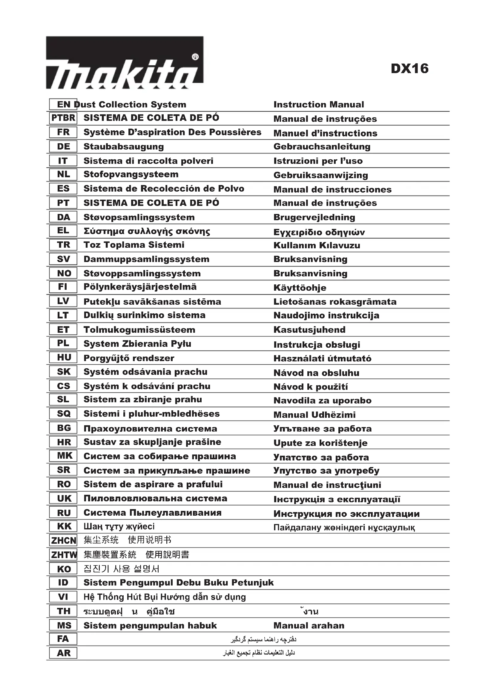 Retrouvez gratuitement la notice de l'appareil DX16 MAKITA au format PDF.