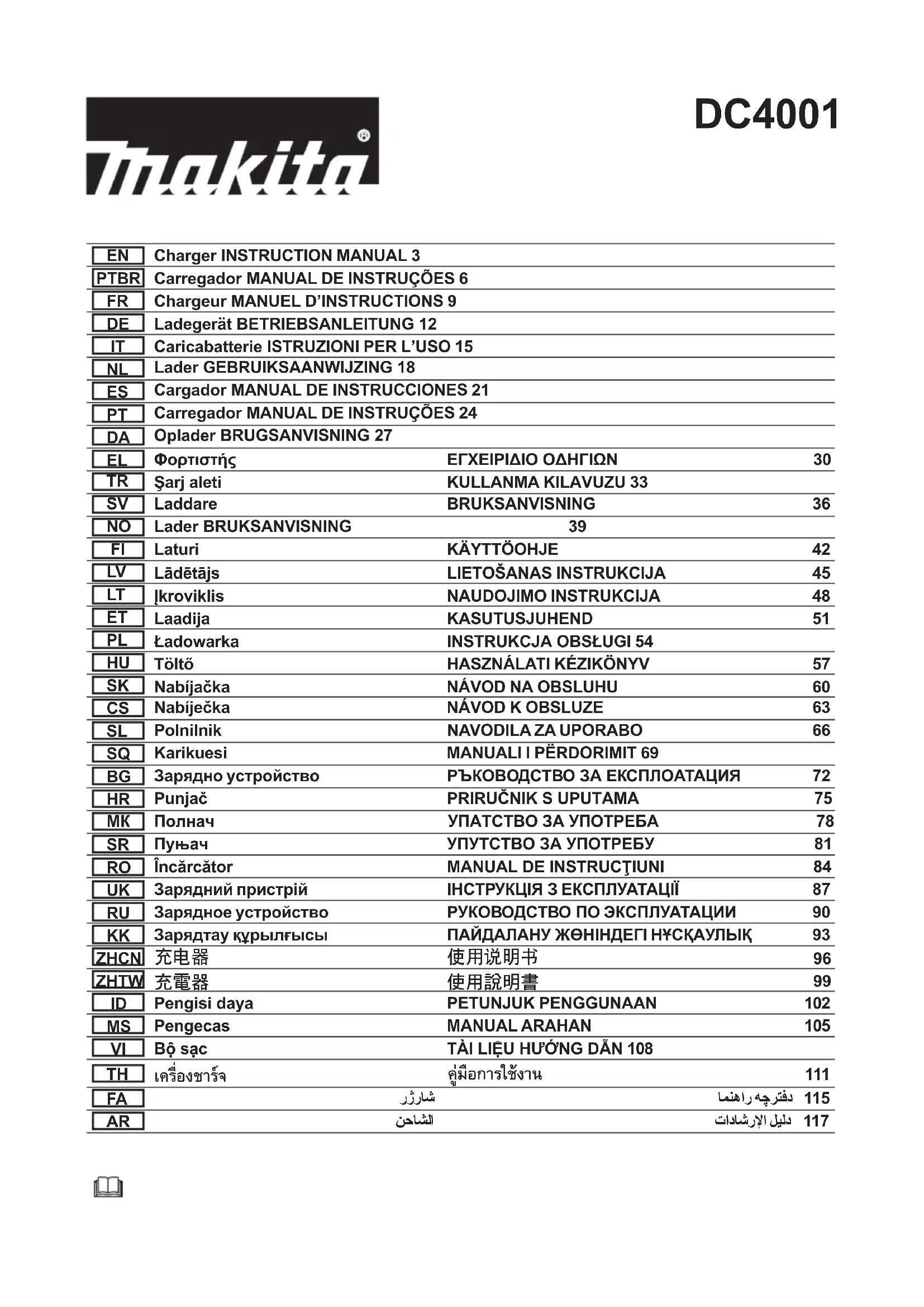 Retrouvez gratuitement la notice de l'appareil DC4001 MAKITA au format PDF.