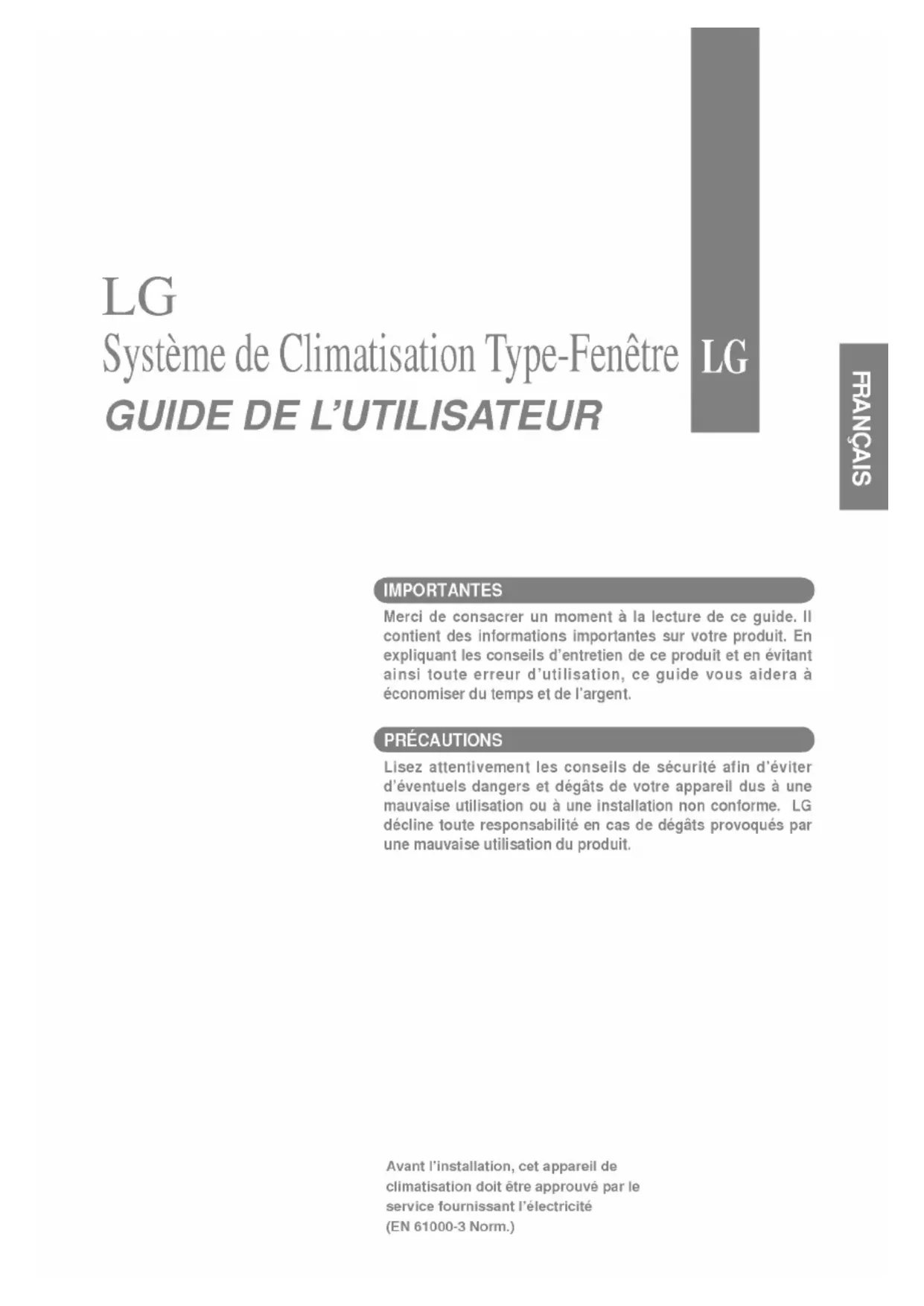 LWC1260PHG - Climatisation LG - Notice d'utilisation et mode d'emploi gratuit