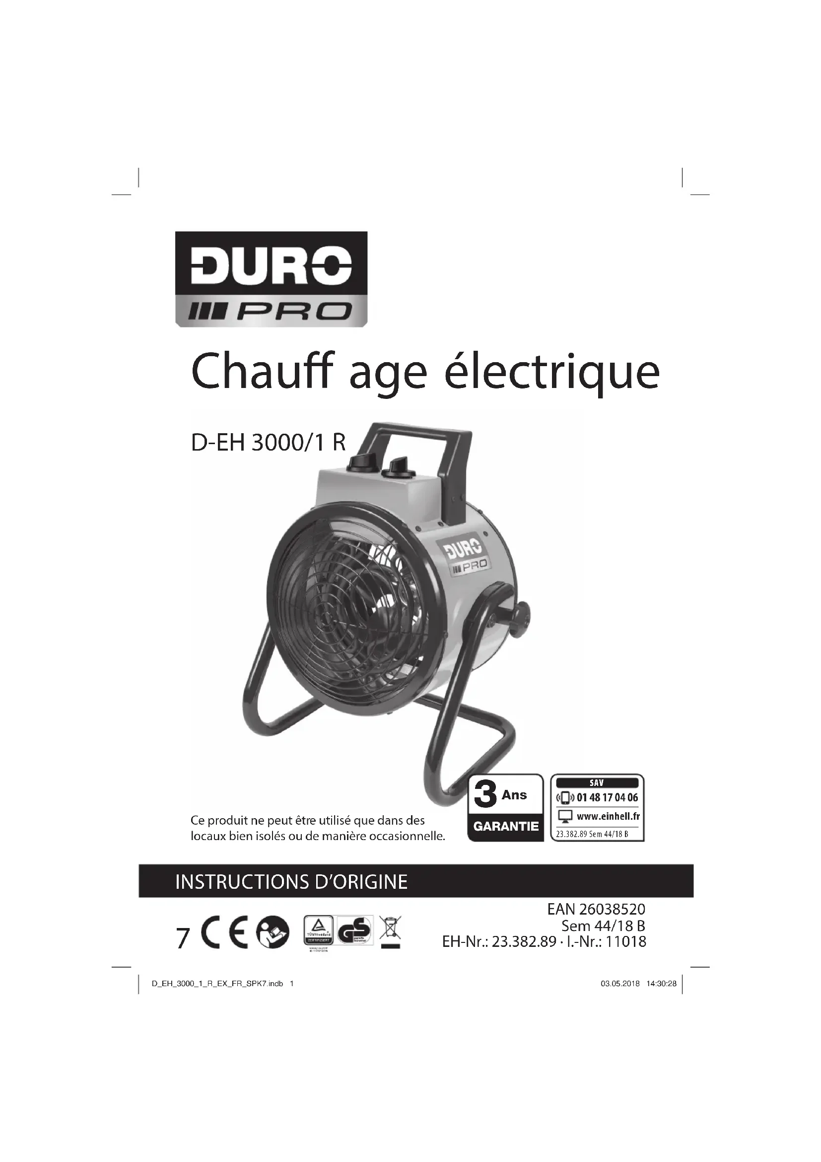 D-EH 3000/1 R - Chauffage DURO PRO - Notice d'utilisation et mode d'emploi gratuit