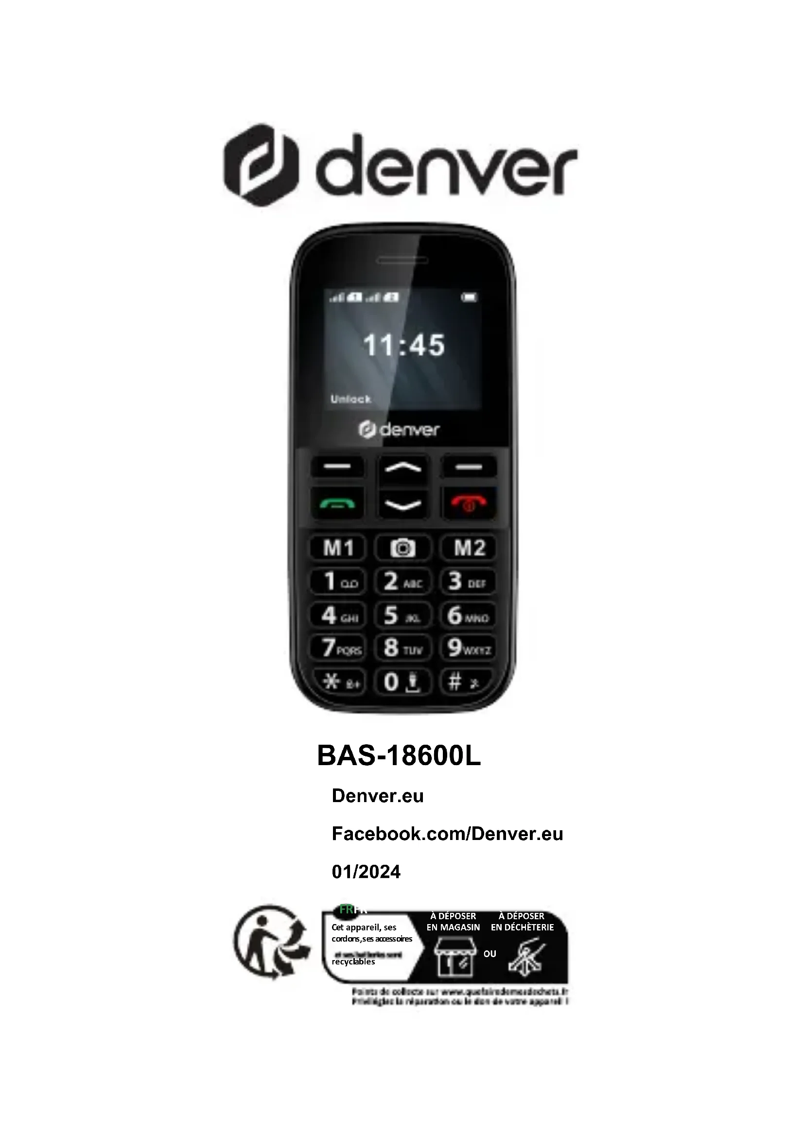 BAS-18600L - Téléphone mobile DENVER - Notice d'utilisation et mode d'emploi gratuit
