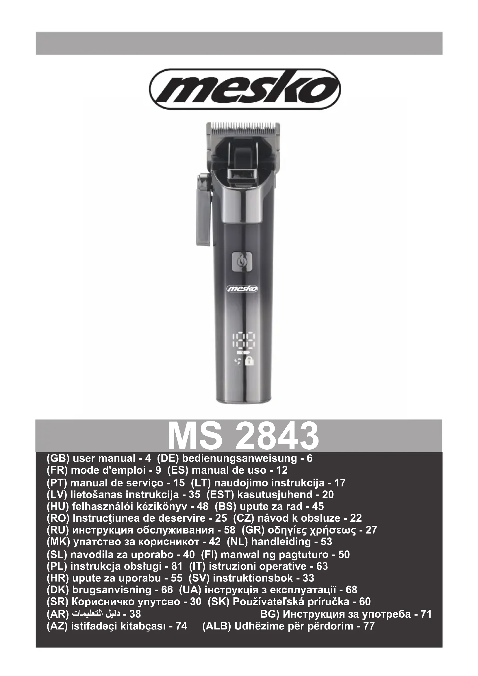 Téléchargez la notice de votre Tondeuse au format PDF gratuitement ! Retrouvez votre notice MS 2842 - Mesko et reprennez votre appareil électronique en main. Sur cette page sont publiés tous les documents nécessaires à l'utilisation de votre appareil MS 2842 de la marque Mesko.