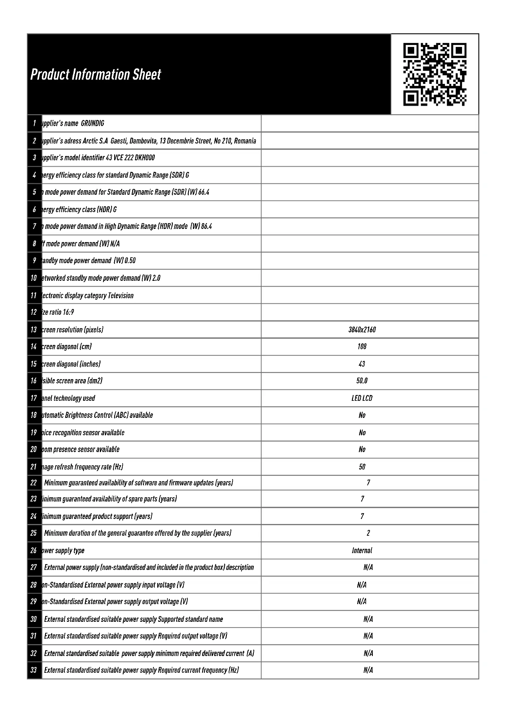 Retrouvez gratuitement la notice de l'appareil 43 VCE 222 GRUNDIG au format PDF.